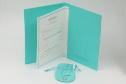 Tiffany & Co. Platinum "Harmony" Engagement Ring with Diamond and Certification. Features a platinum band marked PT950, set with a round brilliant diamond weighing 0.22 carats, color grade F, clarity grade VS2, and graded with excellent symmetry and polish. Includes original Tiffany & Co. pouch and diamond certification document. Size 3.75, total weight being 3 grams.