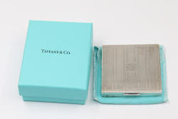 Vintage Tiffany & Co. Sterling Silver Compact With Monogram A.G.R. Features a textured exterior and includes a mirror and interior compartment. Marked Tiffany & Co. Sterling on the side rim. Comes with a teal protective pouch. Total weight of 102 grams.