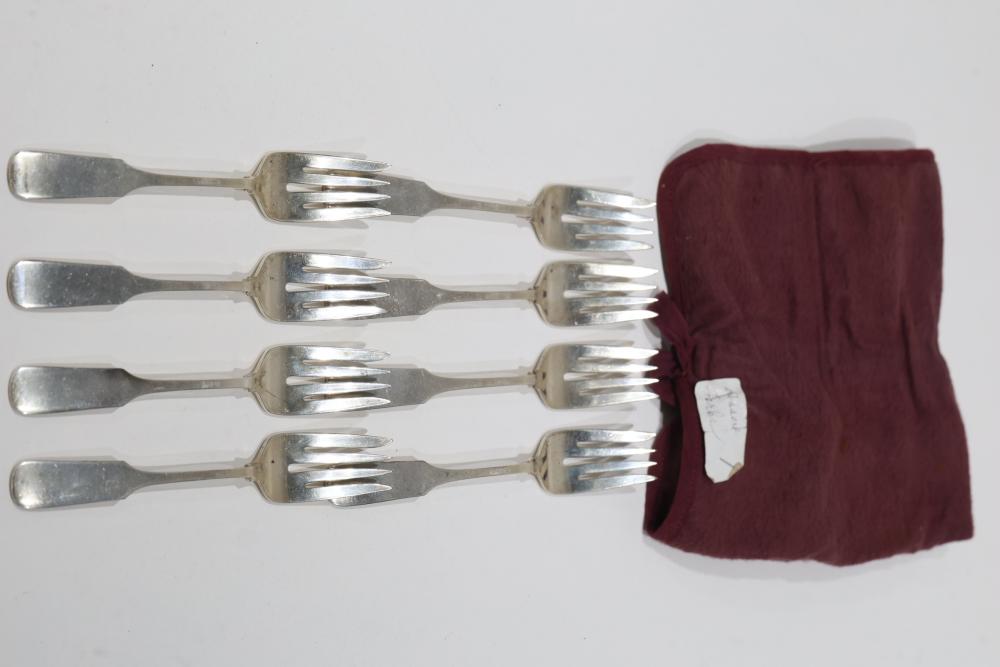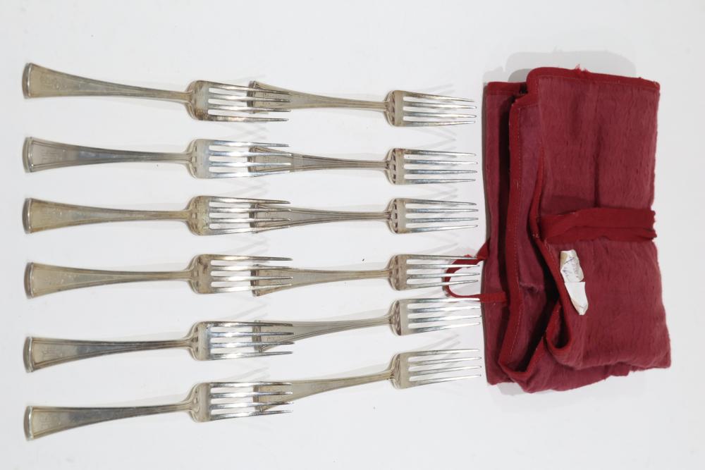 12 Sterling Silver Forks Monogrammed with 'W'. Each fork features a monogrammed 'W' on the handle and a sterling silver hallmark. Total weight being 475 grams.