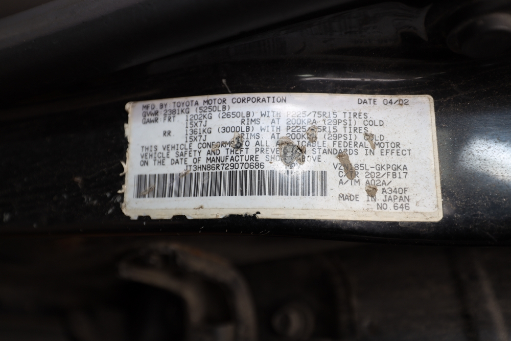 2002 Toyota 4Runner. VIN: JT3HN86R729070686. Body: SUV 4D. Engine: 3.4L V6 FI Gasoline. Odometer reading: 356392. Seller notes: Runs Drives, 4 WD AUTO, NO KNOWN HISTORY, Title & key available. Must be towed.