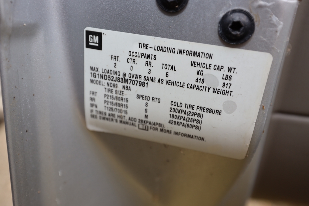 VIN: 1G1ND52J83M707981. Body: Sedan 4D. Engine: 3.1L V6 FI Gasoline. Odometer reading: 76970. Seller notes: Runs Drives, AUTO, RUSTY BRAKE LINES NO BRAKES FAIR COND., Title & key available. Must be towed.