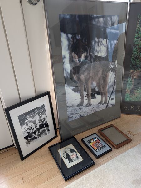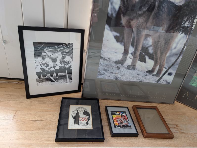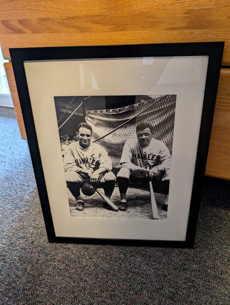 Framed Wall Art, featuring Baseball Photo, Frames. Two framed wildlife posters, ea. 2'Wx3'H; baseball photo for Babe Ruth & Lou Gehrig; small framed wall art, two picture frames.