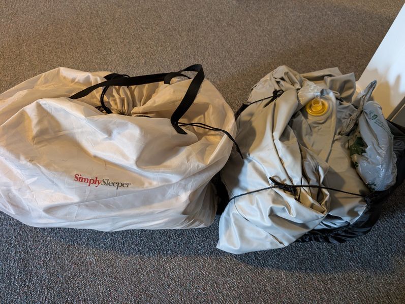 Household Items, featuring Air Mattresses. Two inflatable air mattress with pumps (one in bag); Porter Cable shop vac; folding card table; expandable wood baby gate. Loc in garage & the lower level.