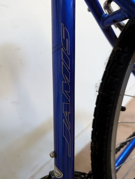 Jamis Citizen Seven-Speed Bike. Blue metallic Jamis Citizen seven speed bike; ankle weights; bike stationary bars; water filtration system (used for hikes); hand grip. Located in the garage & the lower level.