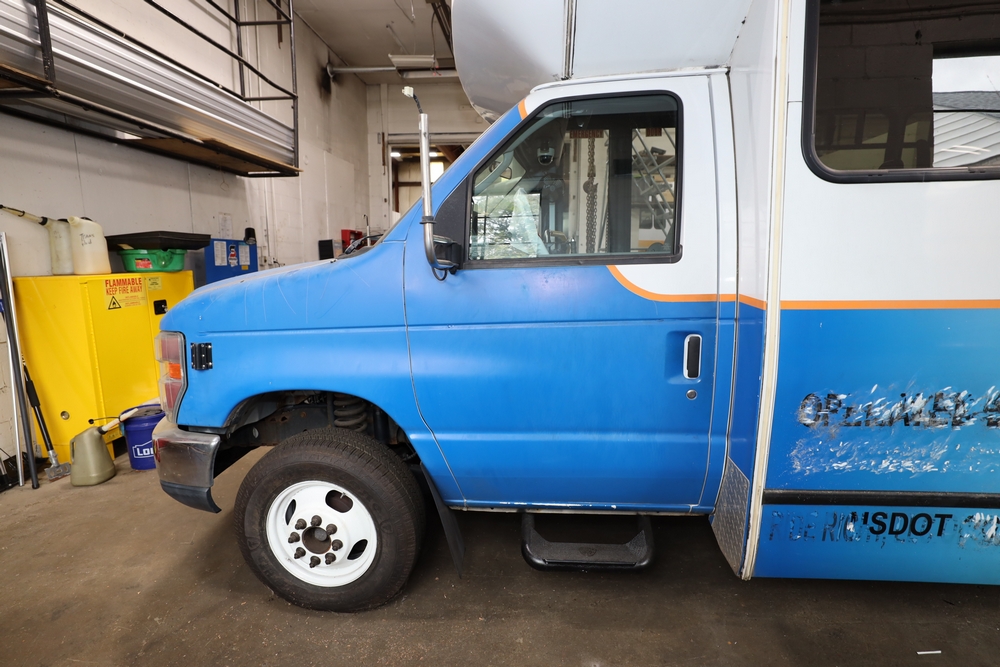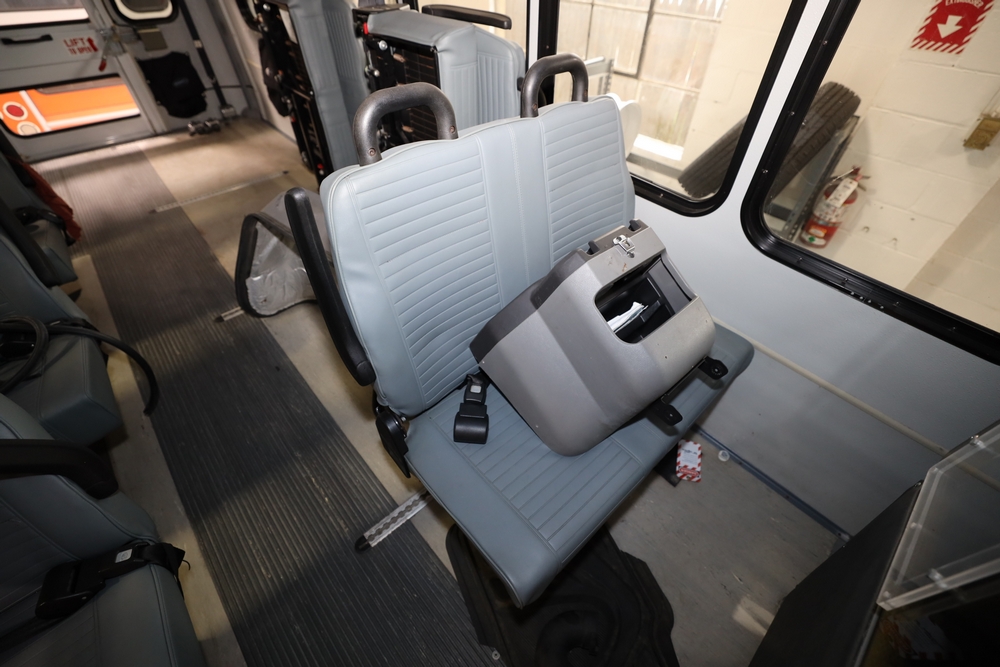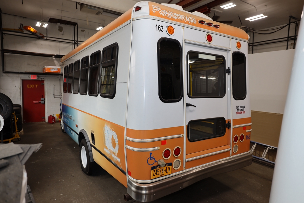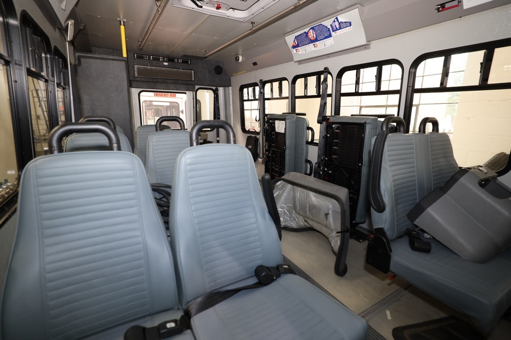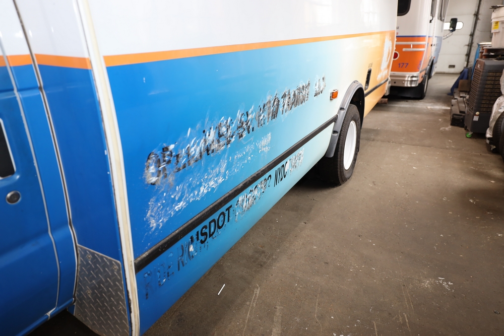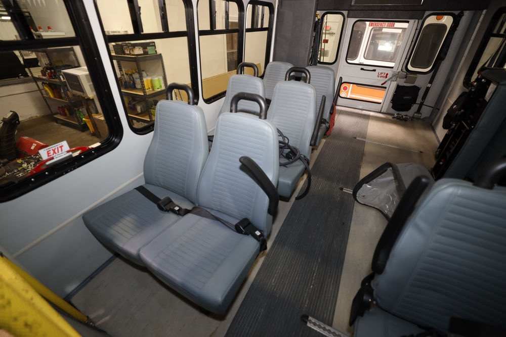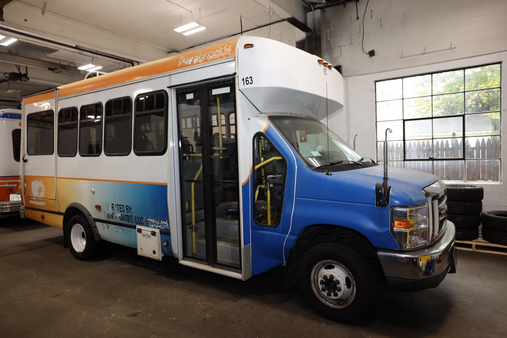 Items include 2013 & 2015 Ford E-450 Super Duty Phoenix buses; office chairs; map dressers/drawers, map chest, filing cabinet & light bults. Items are located in Newburgh & Goshen, NY.