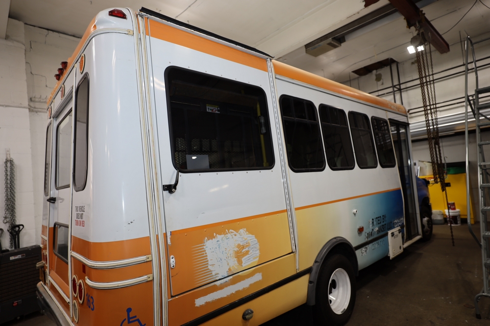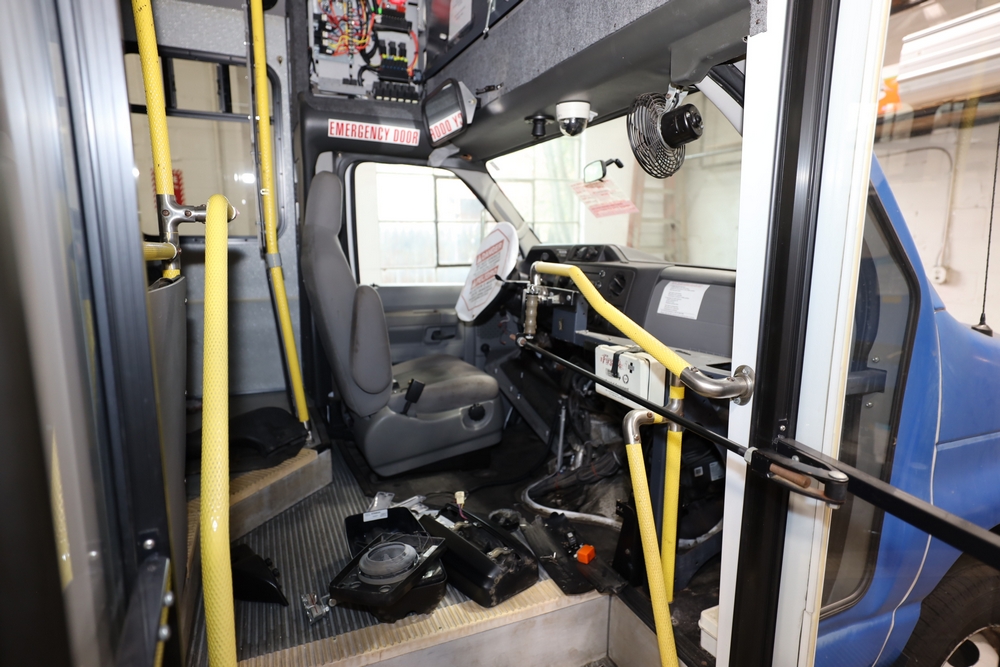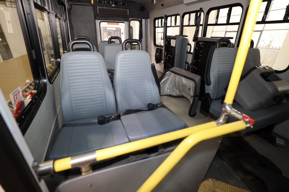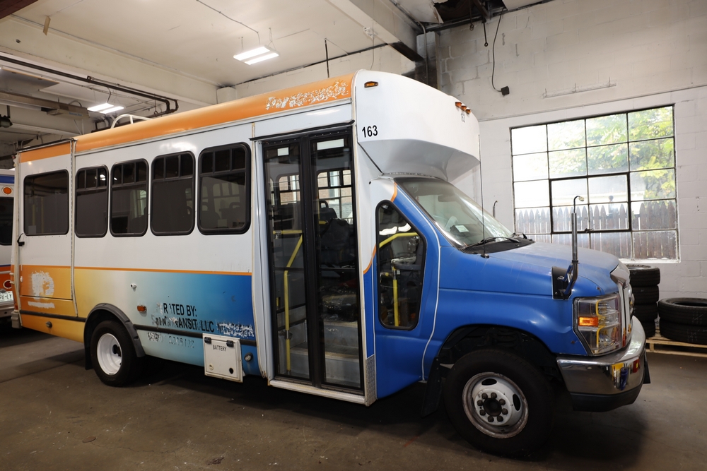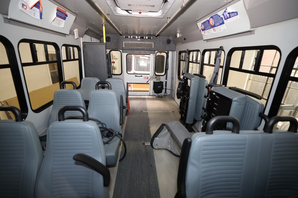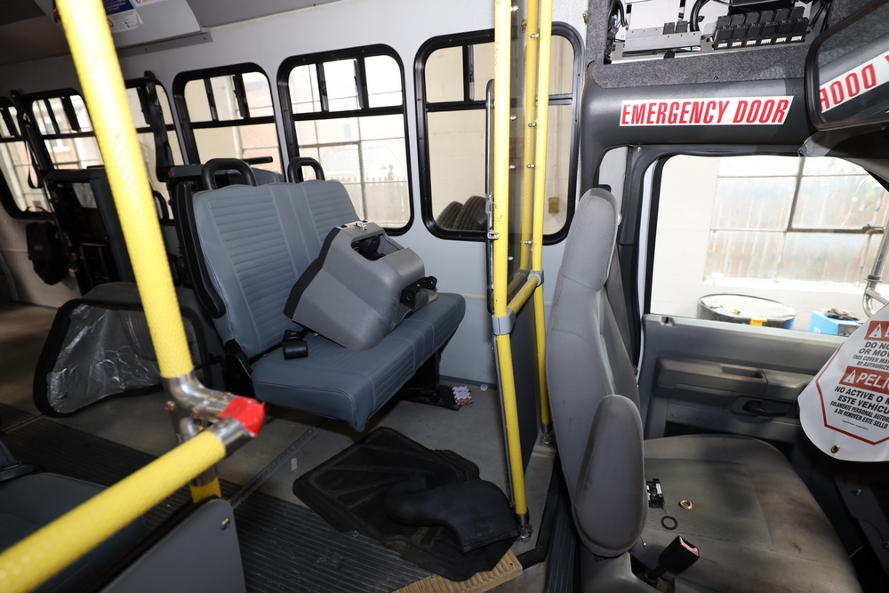 Items include 2013 & 2015 Ford E-450 Super Duty Phoenix buses; office chairs; map dressers/drawers, map chest, filing cabinet & light bults. Items are located in Newburgh & Goshen, NY.