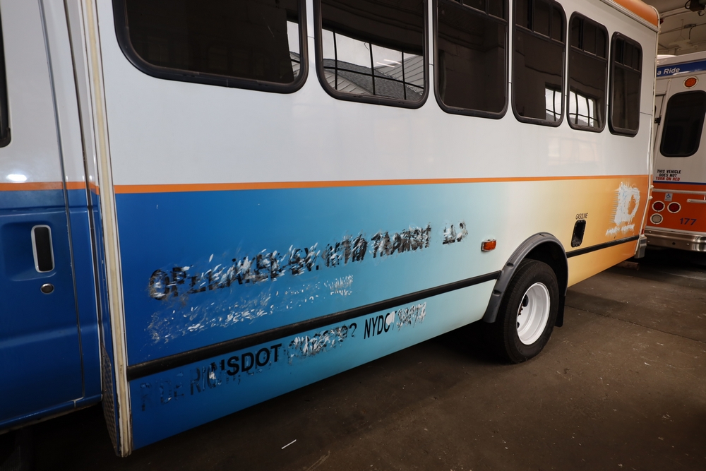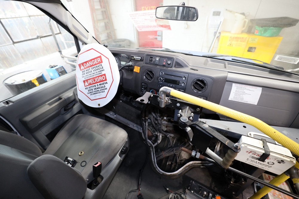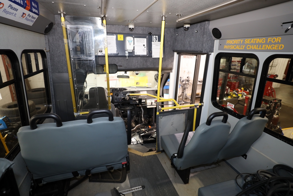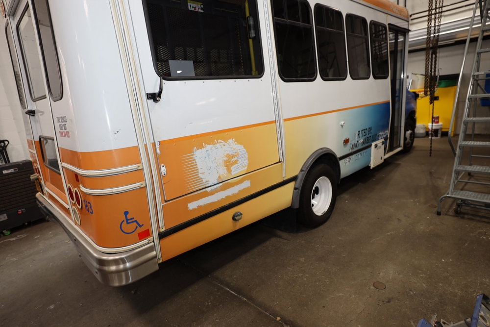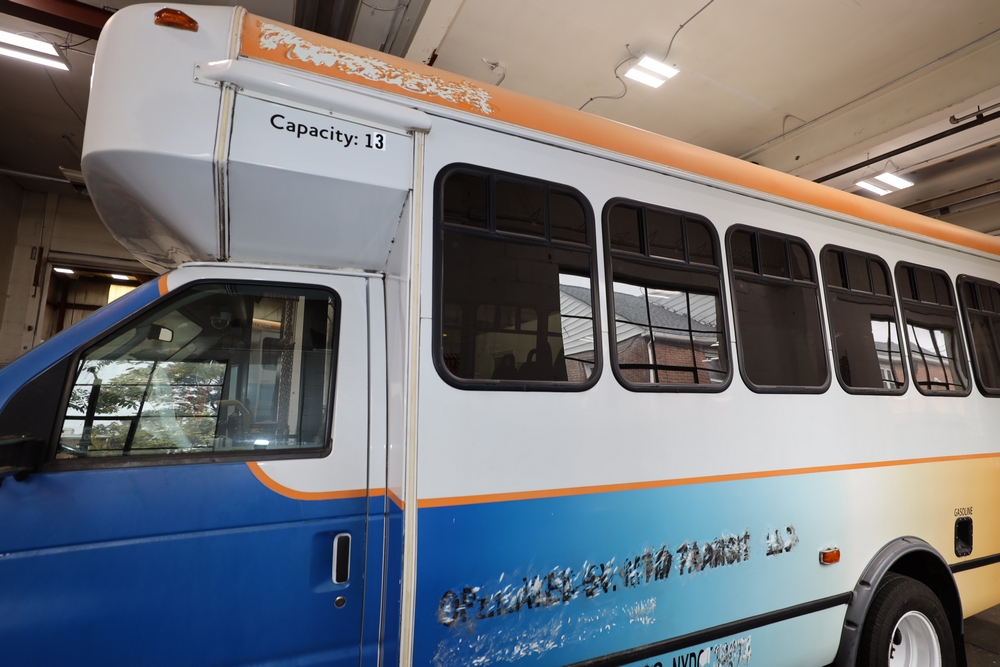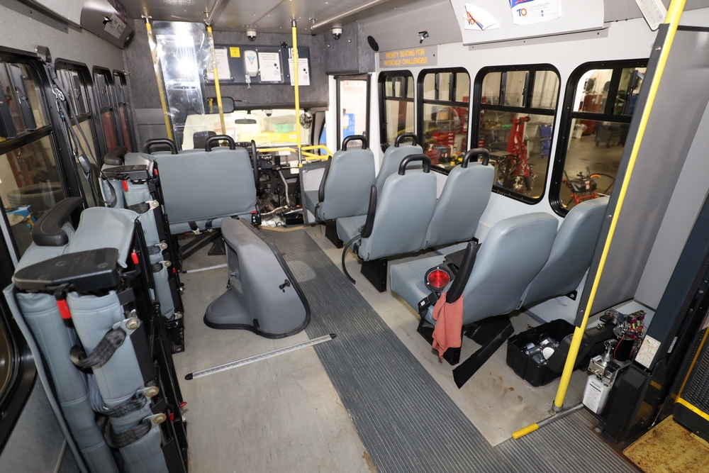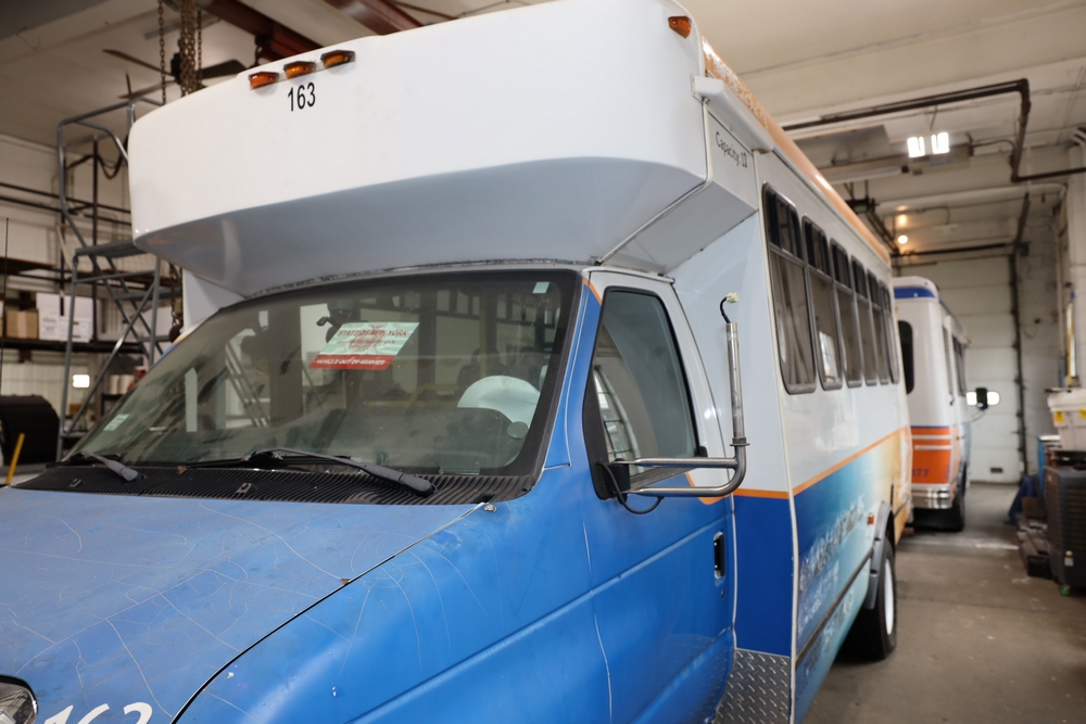 Items include 2013 & 2015 Ford E-450 Super Duty Phoenix buses; office chairs; map dressers/drawers, map chest, filing cabinet & light bults. Items are located in Newburgh & Goshen, NY.