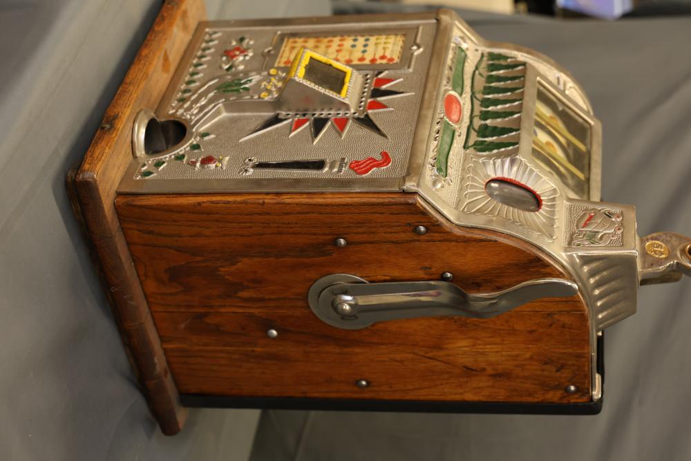 Items include Aruze Corporation slot machine; Mills goose neck slot machine; 1975 New York Yankees team signed baseball; Bruce Lee Lineage black hardwood nunchakus; Muhammad Ali frame boxing poster "Basic Boxing Moves"; Marvel Comics Group Invaders #1 & Defenders #1 CGC Graded; mechanical banks feat. animal & sports scenes; vintage coin-operated machines; Cal Ripken Jr. & John Elway decorative plates & plaques; die-cast construction vehicle model replicas; 1992 NFL ProLine card series; vintage arcade machines; Hawthorne Village HO scale trail collectibles; Ertl die-cast metal Chevrolet & Ford delivery banks; framed display of arrowheads/stone tools; vintage domino set in box; fraternal/patriotic/commemorative medals/ribbons; P.J. Meine deer sculpture; Star Wars figurines/collectibles; DonRuss & Topps sports cards & more. Items are located in Pleasant Valley, NY.