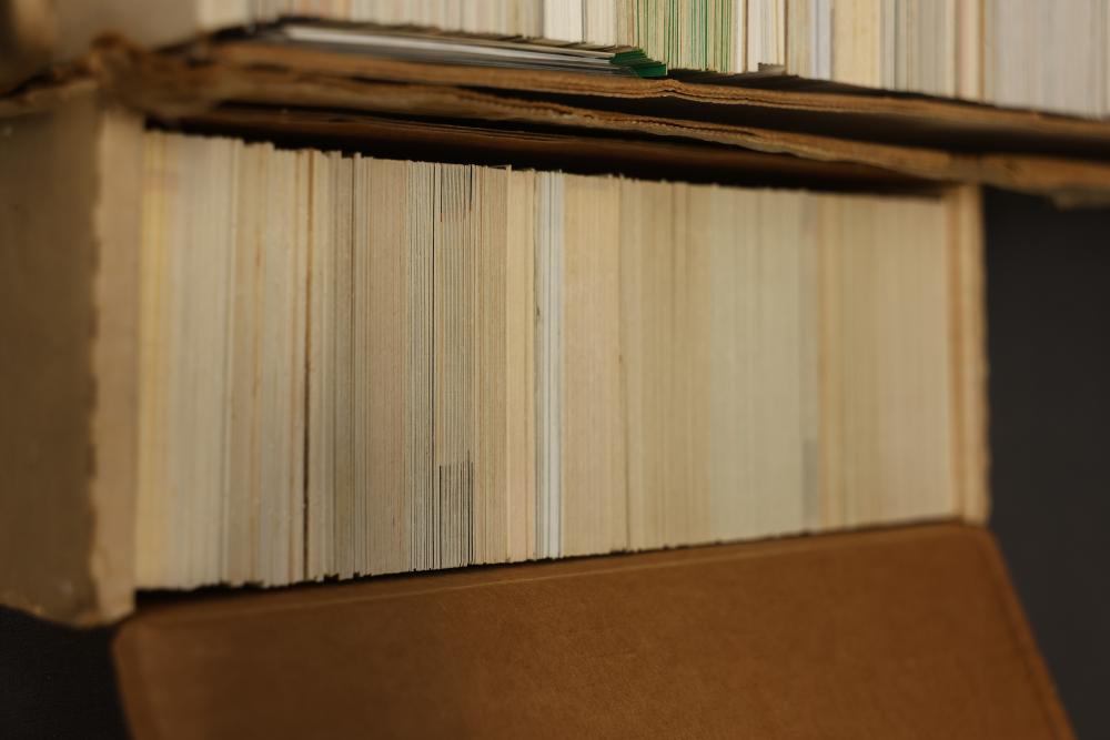 Sports Cards Featuring Baseball, Football, Basketball, and Hockey. Includes a large quantity of cards organized in boxes, spanning various teams and players. Cards are from multiple eras and cover different aspects of these sports genres. Pickup only.