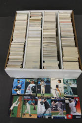 Baseball Cards in Storage Box. Includes a selection of cards showcasing various players and brands. Cards are housed in a storage box designed for easy categorization and organization. Pickup only.