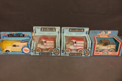 Ertl Die-Cast Metal Chevrolet and Ford Delivery Banks in Original Boxes. Includes 1948 Chevrolet Panel Delivery Bank, 1905 Ford Delivery Car Bank (two pieces with locking coin banks), and 1913 Ford Runabout Delivery Car Bank. All pieces appear to come in their original packaging. Pickup only.