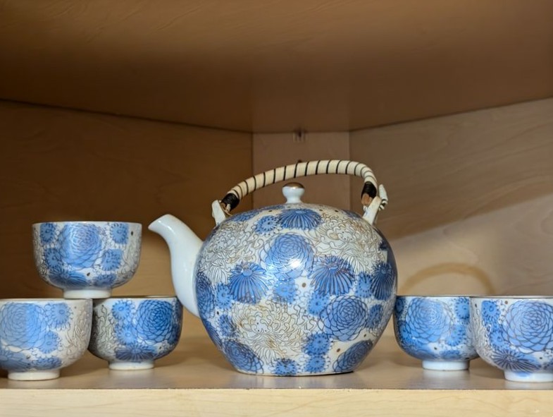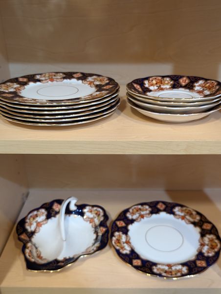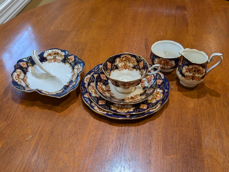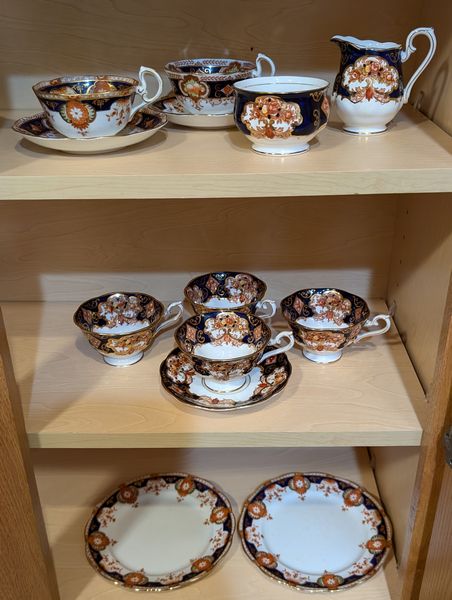 Asian Entertaining featuring Royal Albert. Two-dozen Royal Albert items, incl: plates, cups, saucer, serv dish, incl several "heirloom" collections (see photos in cab); seven-piece Asian tea put & cup set; two vases; three figurines; cup; covered bowl. See photos for more details.