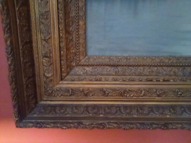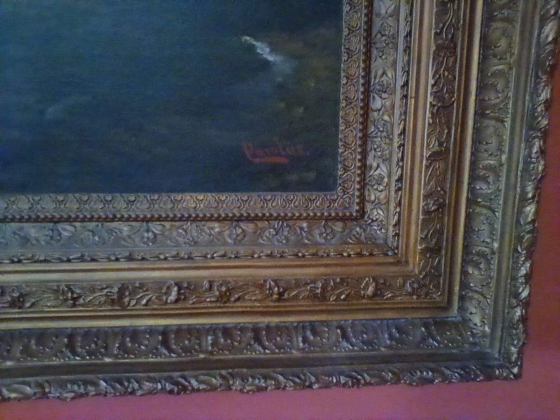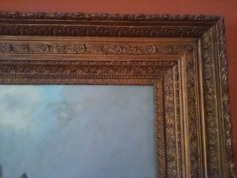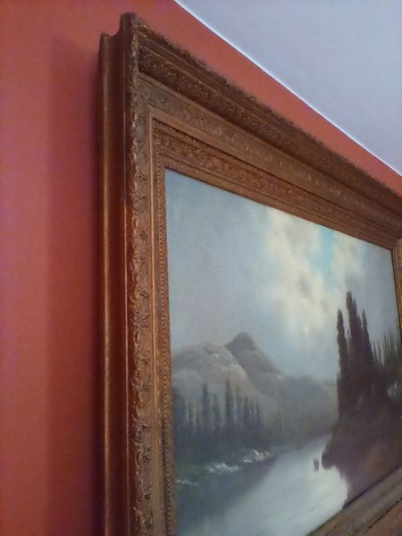 Signed Antique Painting in Gilt Frame. Sign Carolus painting (believed to be Hudson River Valley), 63"Wx42"W in a 6"W ornate gilt frame. See photos for details. Too largea to remove from wall to check for provenance. Family member was gifted the item.
