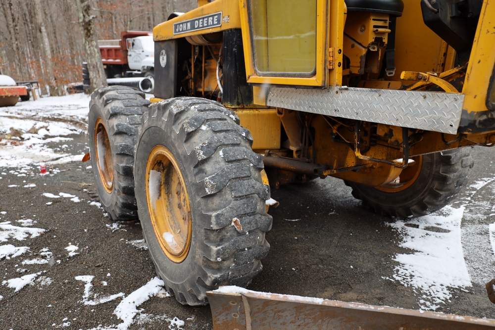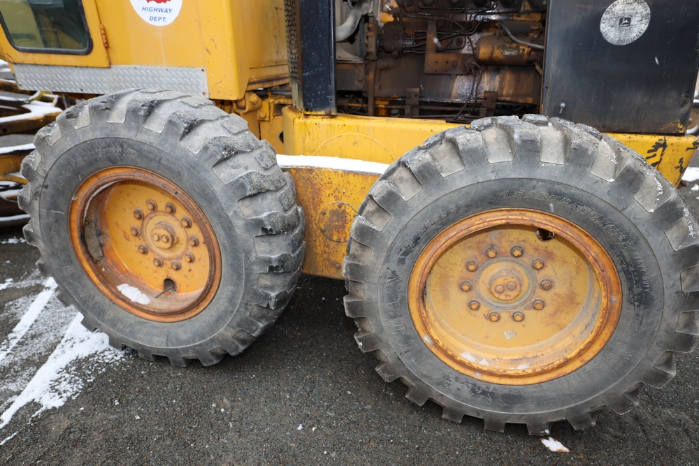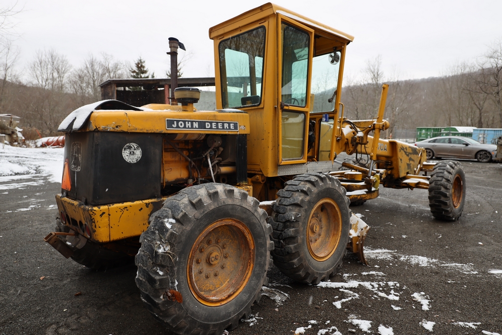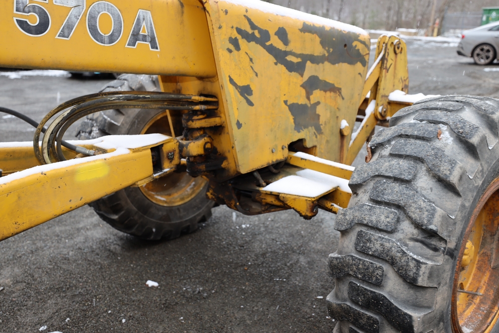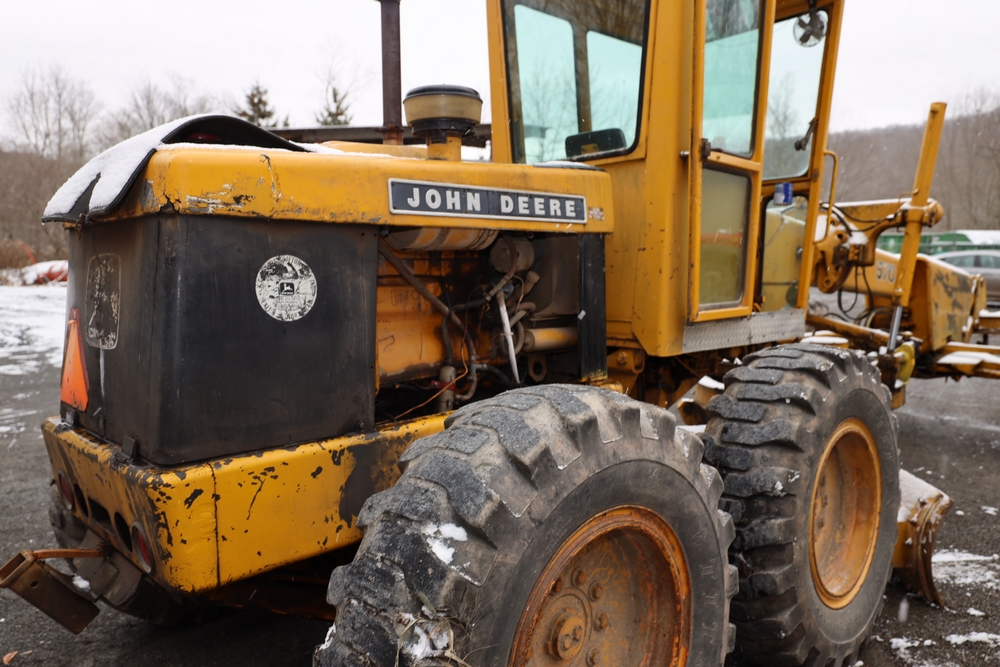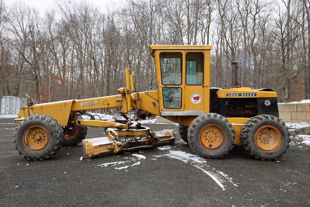 Items include 2021 Case 580SN Backhoe Loader, 1982 John Deere 570A Grader, 2003 Case 580M Series 2 Backhoe Loader, 2003 International WorkStar 7500, 1978 John Deere 570A Grader, Tenco plow, and salt spreaders. Items are located in Arkville, NY.