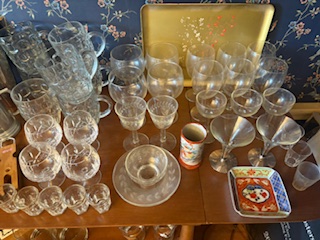 Items include mid-century Thomasville dining set; Radko Christmas ornaments; mid-century modern bed; silver plate entertaining pieces; Ludwig ensemble drum set; Spaulding & Wilson golf clubs; camera equipment; vintage farm tools; fine China; Carnival glass; Cuisinart electric griddle in box; red cast iron pans; German steins; art decor metal; stoneware; vintage TV in wood cabinet; Bushnell telescope; camping equipment; Canoe/fishing equipment & more. Items are located in West Hartford, CT.