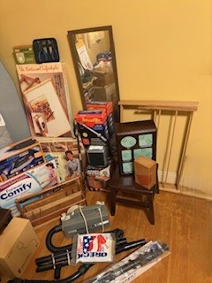 Household Functional. Incl: lamp table; ironing board; mag rack; clothes drying rack; table lamps; Oreck canister vac; floor mirror; more. See photos.
