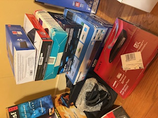 Electronics, featuring Virtual Glasses. Equip incl: VHS/DVD player; Toshiba DVD player (boxed); I-glasses!; amplifier; much more. Most items in boxes. See photos.