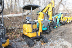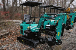 Items include new 2025 CFG Industrial mini excavators, gas powered mini excavators; new 2025 KJ 20' bi-parting iron gates, double garage metal shed, all-steel carport, livestock metal shed, hot-dip galvanized field fence, portable restroom; new MIVA mini excavator attachments: auger, rake, ripper, hedge cutter, hydraulic thumb; tilting excavator bucket; rubber track; new 2025 GIYI skid steer fork attachment; new 2025 SKLP fork extension; new 2025 MIG welder; new Husky black tool locker; new 2025 CFG Industrial mini skid steer backhoe & more. Items are located in Pleasant Valley, NY. Preview is highly recommended.