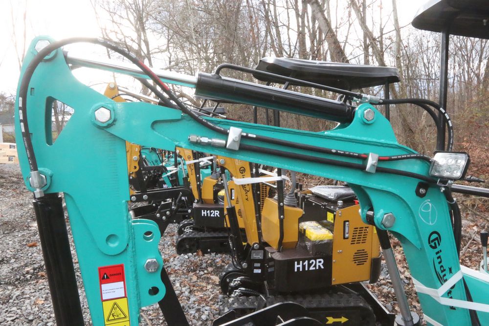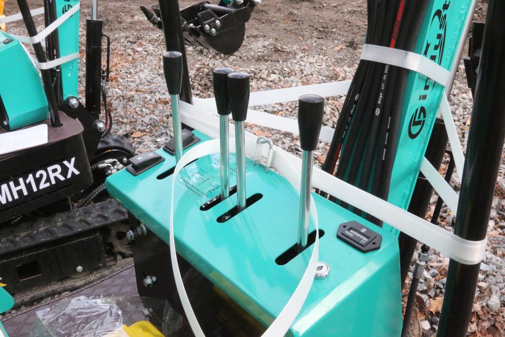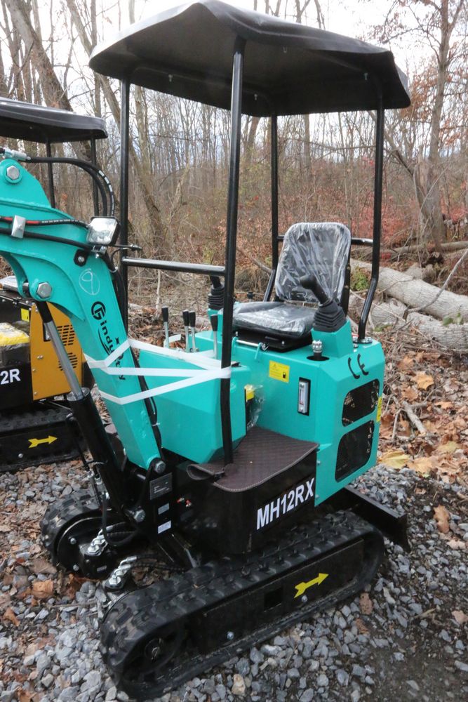 New 2025 CFG Industrial MH12RX mini excavator with bucket, thumb, gas engine. Hours reading less than 1 hour.
