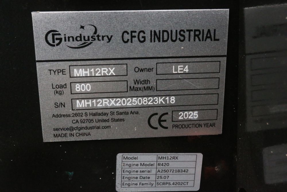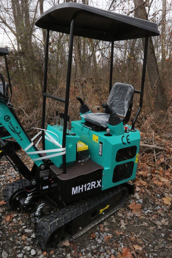 New 2025 CFG Industrial MH12RX mini excavator with bucket, thumb, gas engine. Hours reading less than 1 hour.