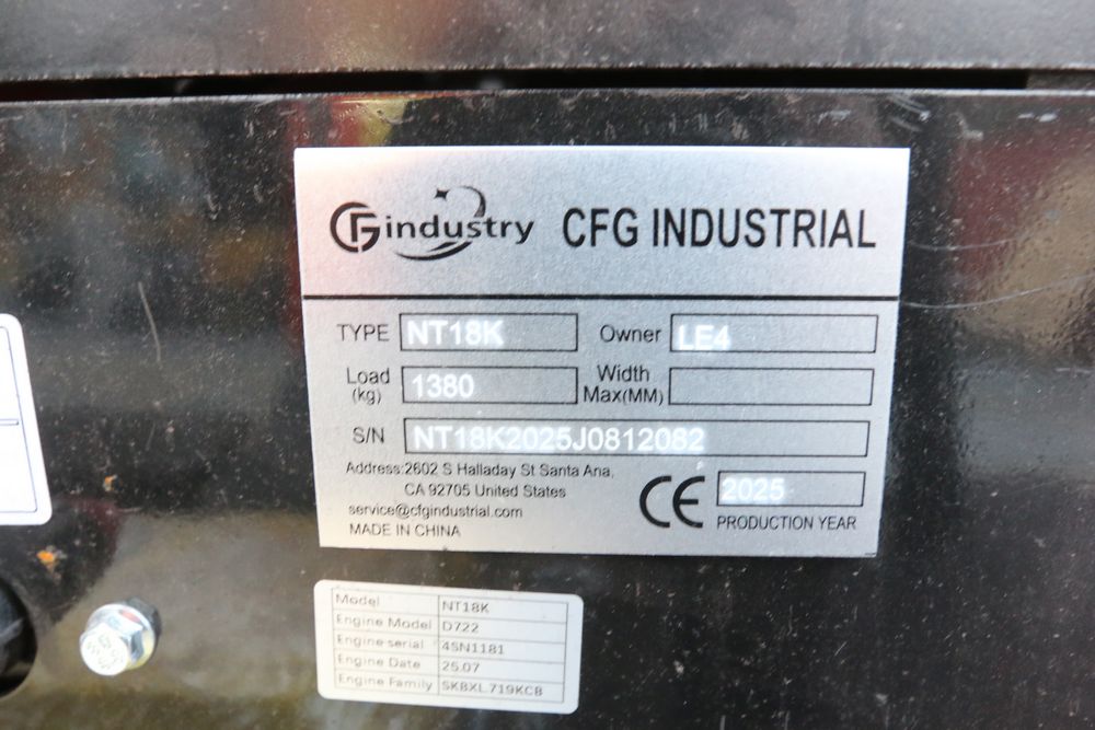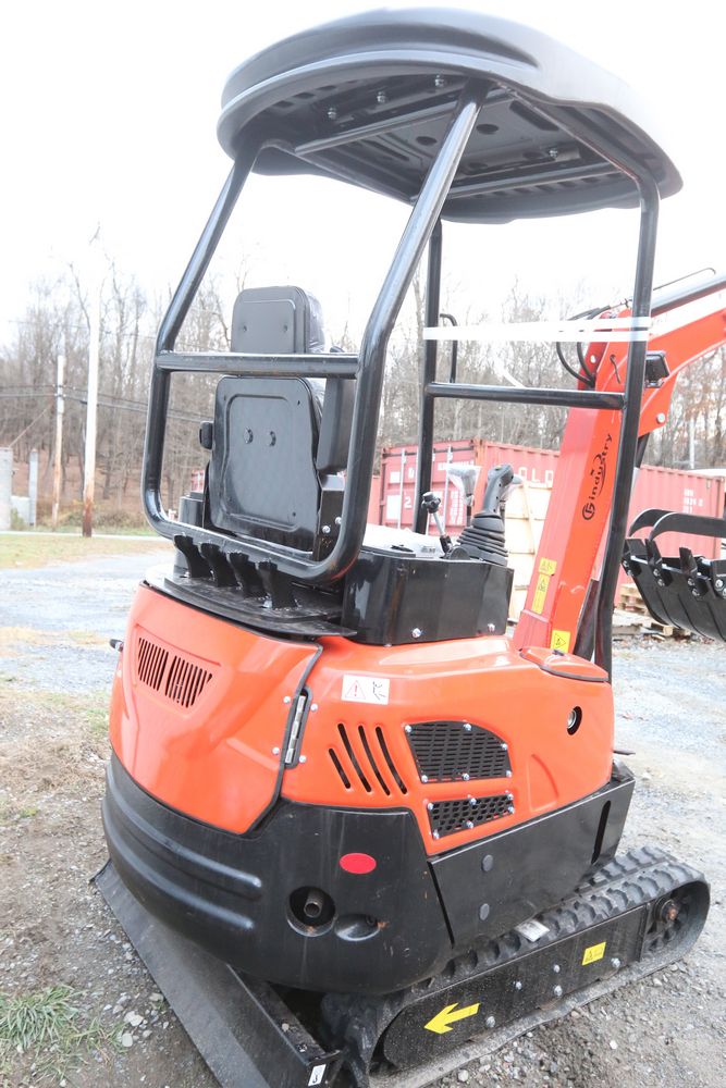 New 2025 CFG Industrial mini Excavator, Kubota 15HP Diesel engine with EPA, model NT18K, with thumb, canopy cover, dozer blade, hand and foot controls. Hours reading less than 1 hour.