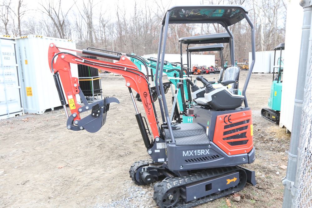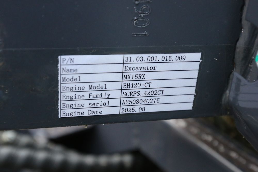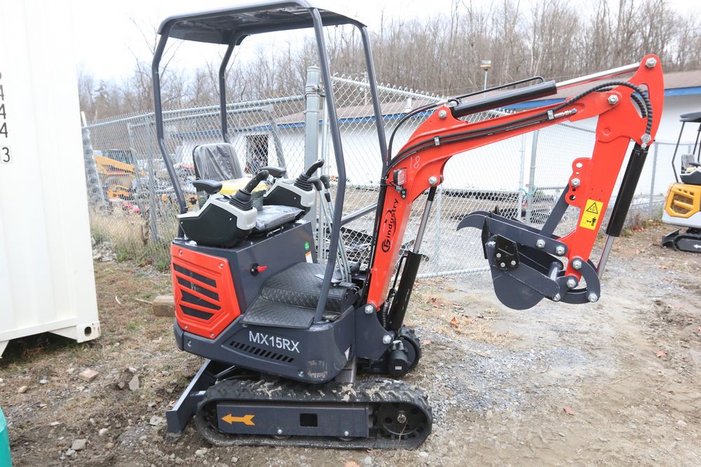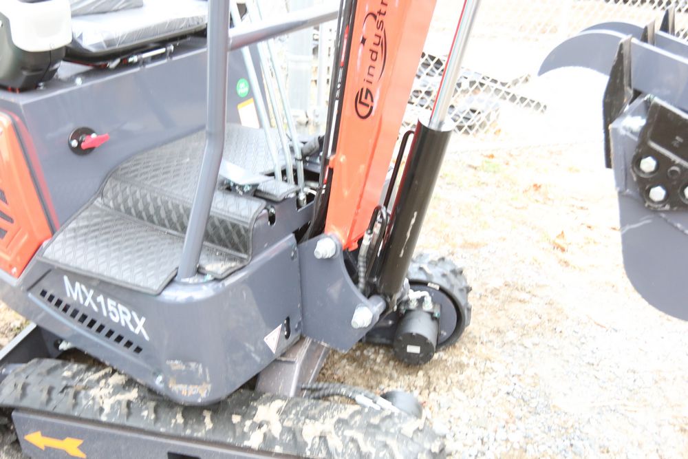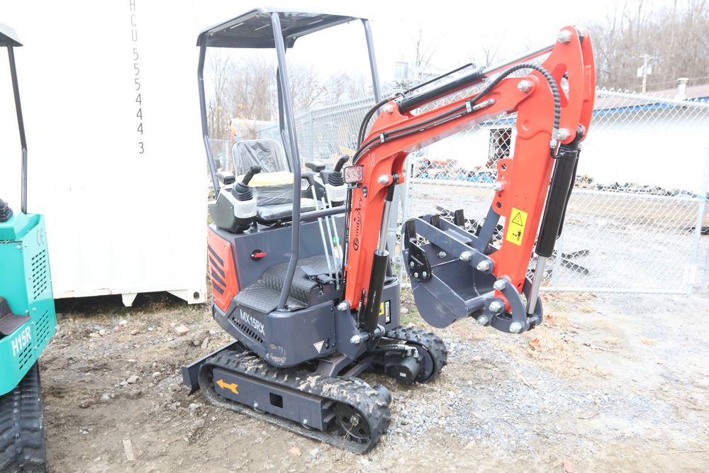 New 2025 CFG Industrial MX15RX Mini Excavator with a 420CC gas engine, dozer blade, bucket, pilot control’s, and digital gauges. Hours reading less than 1 hour.