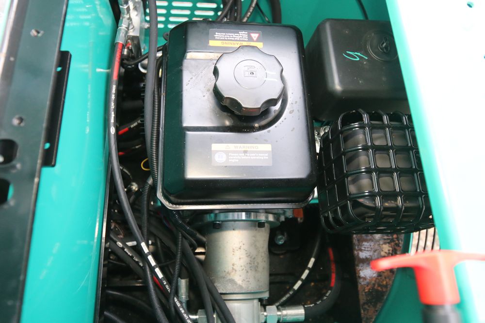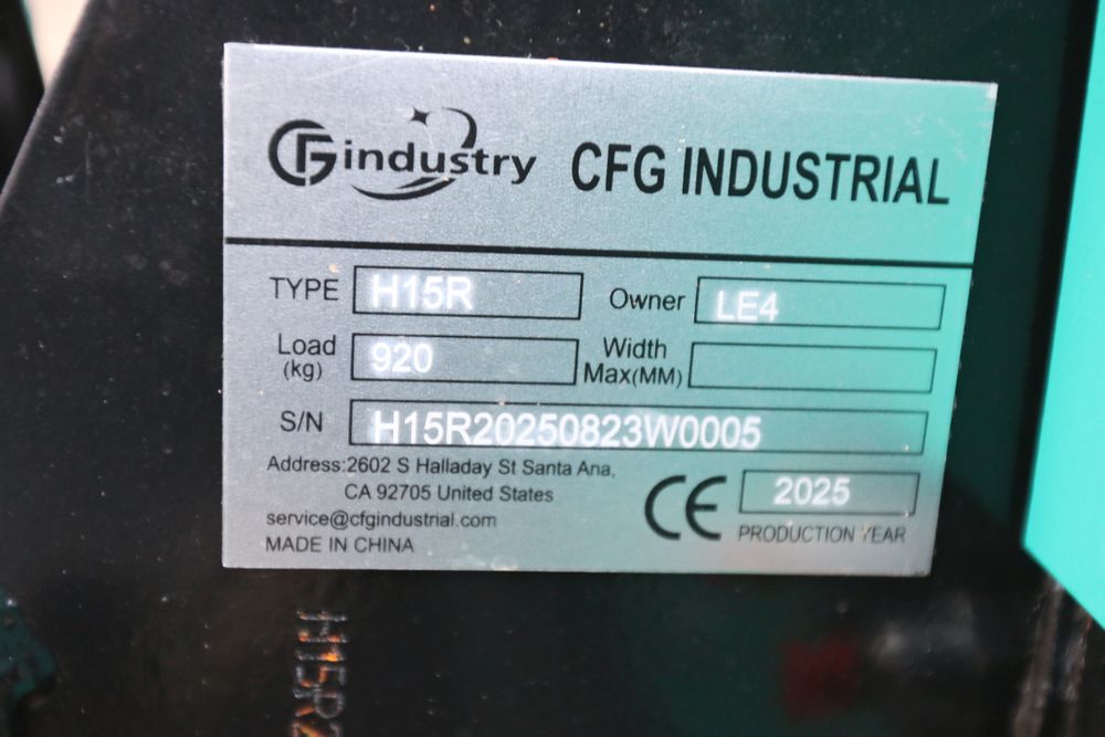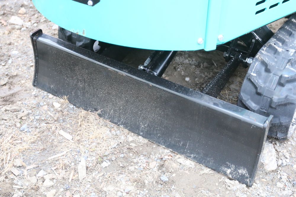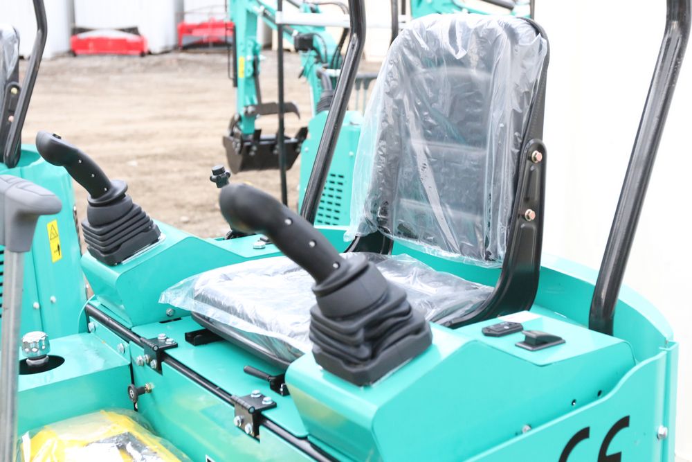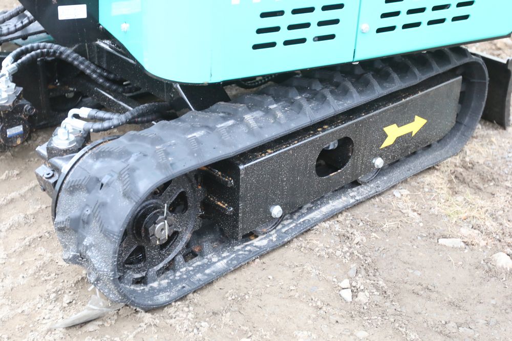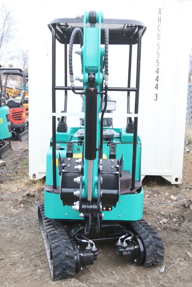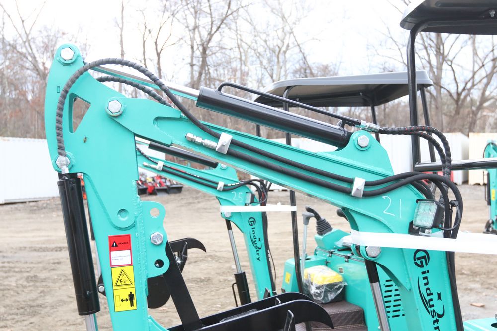 New 2025 CFG Industrial gas powered mini Excavator model H15R with 420cc gasoline engine, bucket, 4' long tracks, 38.5" wide base, 6" wide tracks, canopy, hydraulic boom & bucket controls, pilot system, thumb, dozer blade. Hours reading less than 1 hour.