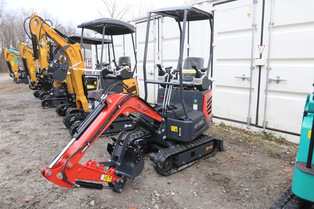 Items include new 2025 CFG Industrial mini excavators, gas powered mini excavators; new 2025 KJ 20' bi-parting iron gates, double garage metal shed, all-steel carport, livestock metal shed, hot-dip galvanized field fence, portable restroom; new MIVA mini excavator attachments: auger, rake, ripper, hedge cutter, hydraulic thumb; tilting excavator bucket; rubber track; new 2025 GIYI skid steer fork attachment; new 2025 SKLP fork extension; new 2025 MIG welder; new Husky black tool locker; new 2025 CFG Industrial mini skid steer backhoe & more. Items are located in Pleasant Valley, NY. Preview is highly recommended.
