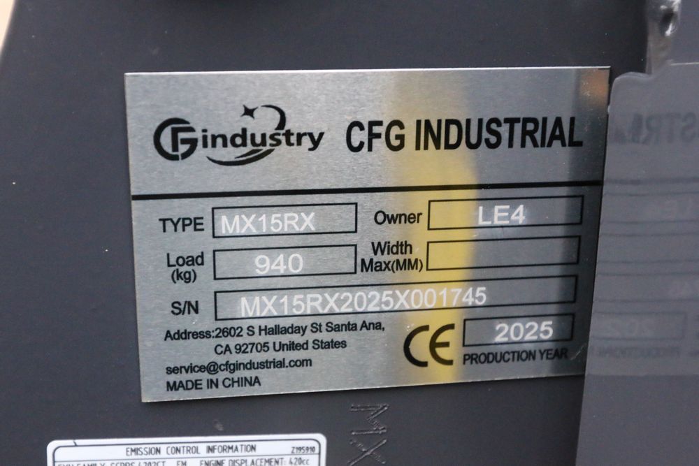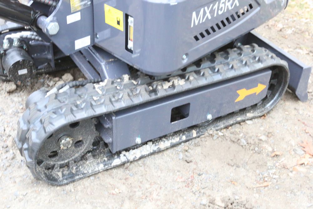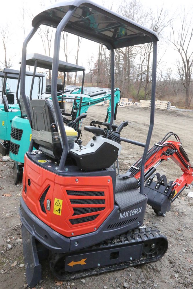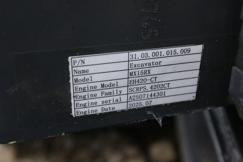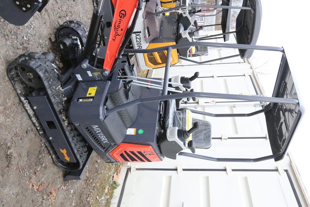 New 2025 CFG Industrial MX15RX Mini Excavator with a 420CC gas engine, dozer blade, bucket, pilot control’s, and digital gauges. Hours reading less than 1 hour.
