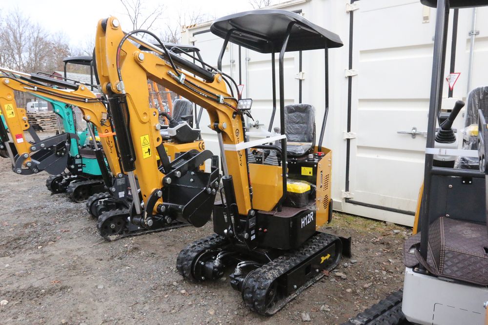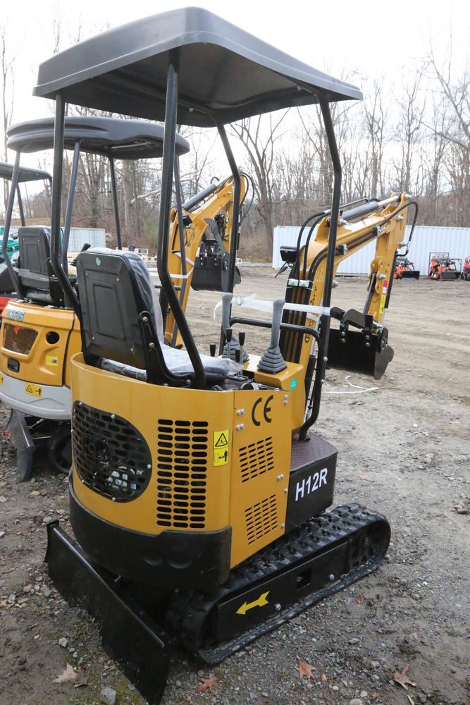 New 2025 CFG Industrial gas powered mini Excavator model H12R with 420cc gasoline engine with EPA, bucket, 4' long tracks, 36.5" wide base, 6" wide tracks, canopy, hydraulic boom & bucket controls, dozer blade. Hours reading less than 1 hour.