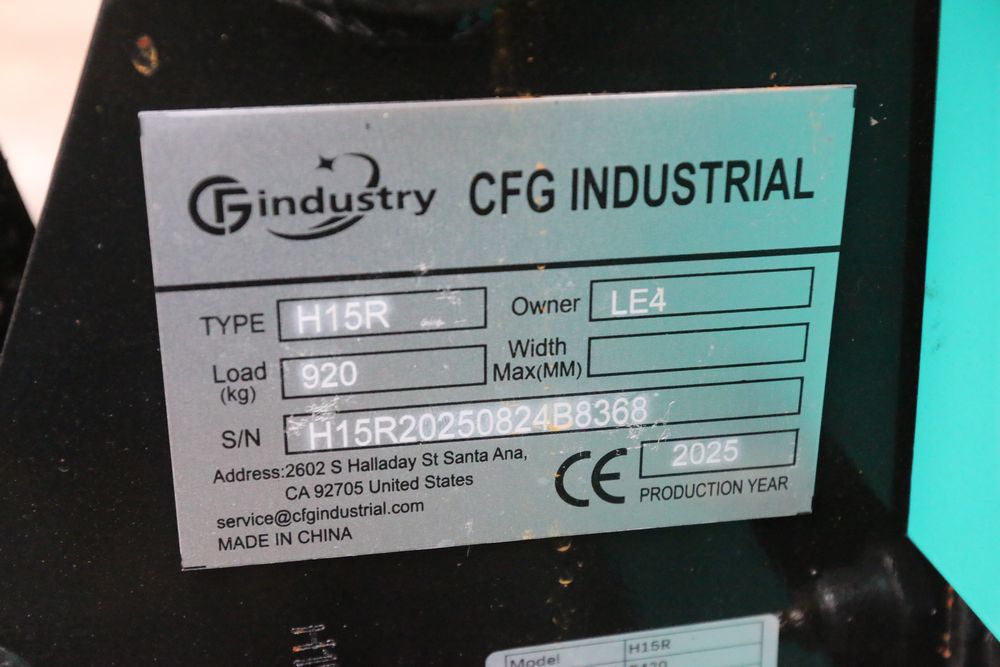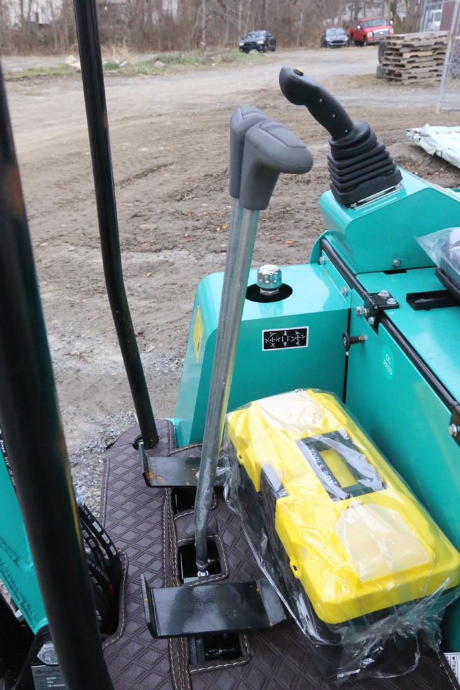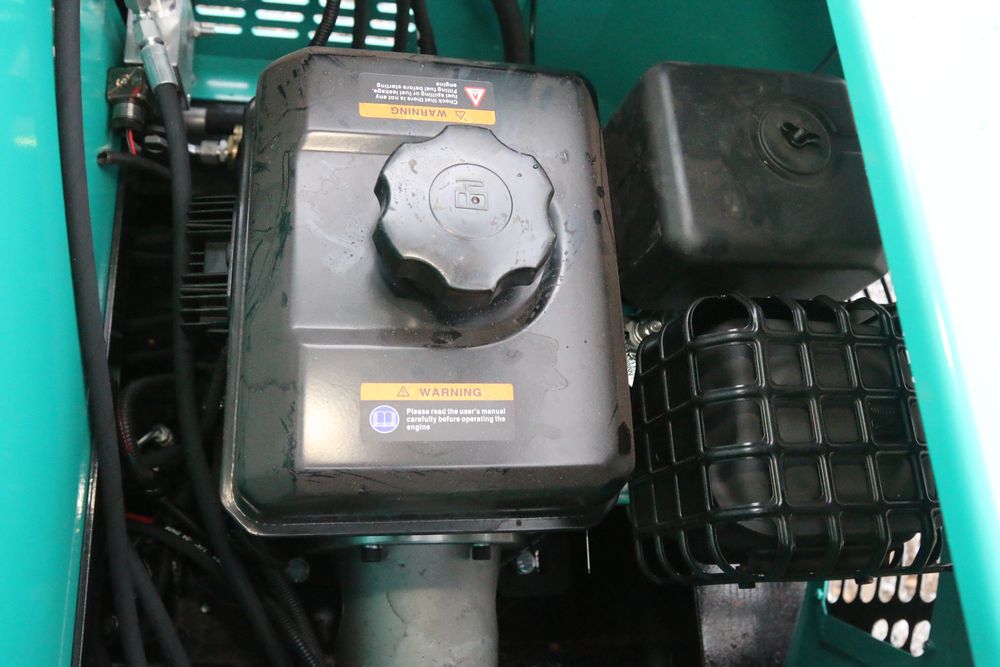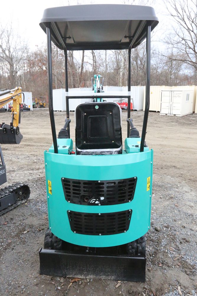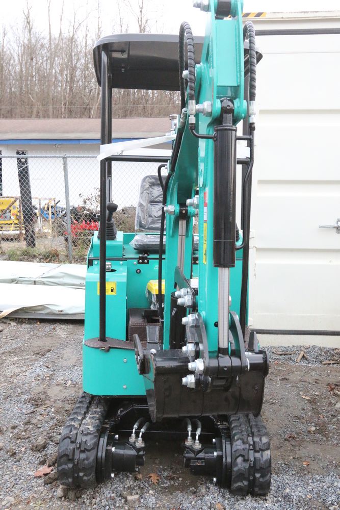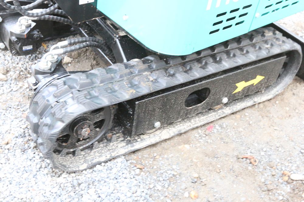 New 2025 CFG Industrial gas powered mini Excavator model H15R with 420cc gasoline engine, bucket, 4' long tracks, 38.5" wide base, 6" wide tracks, canopy, hydraulic boom & bucket controls, pilot system, thumb, dozer blade. Hours reading less than 1 hour.