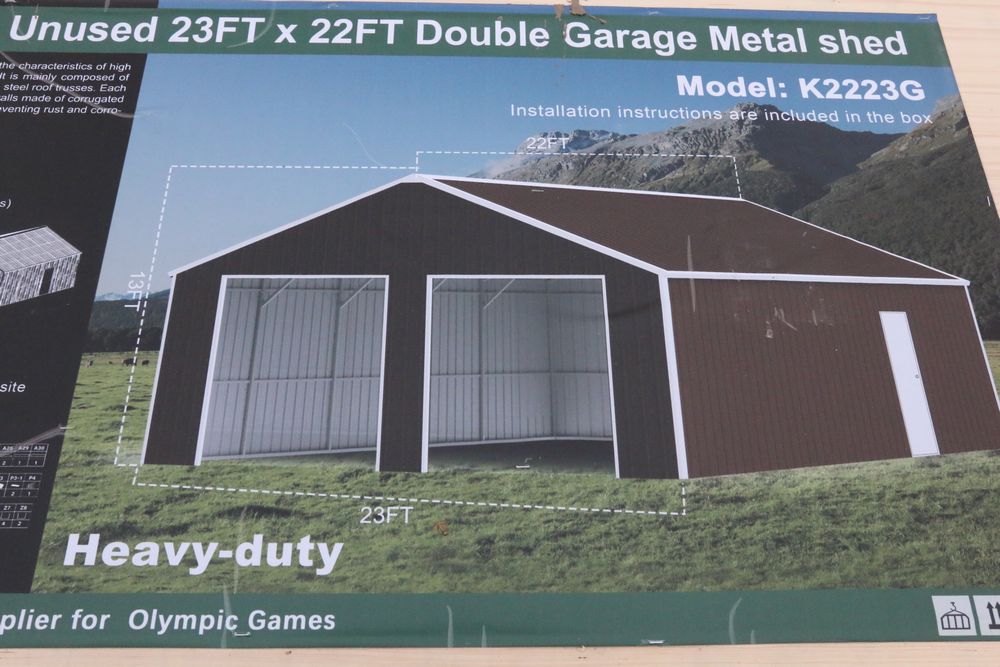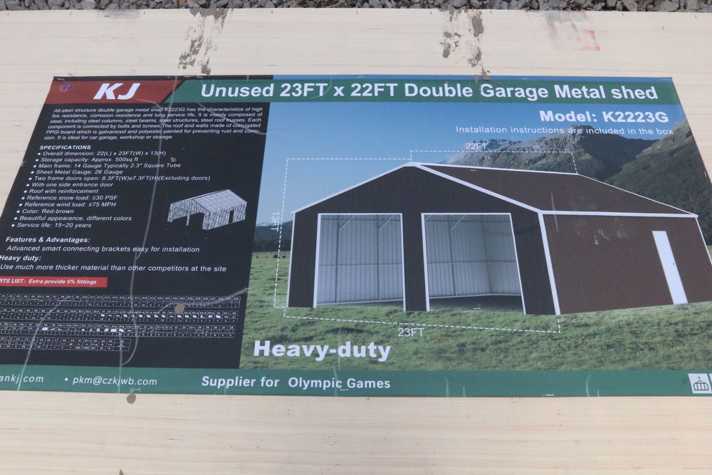 Items include new 2025 CFG Industrial mini excavators, gas powered mini excavators; new 2025 KJ 20' bi-parting iron gates, double garage metal shed, all-steel carport, livestock metal shed, hot-dip galvanized field fence, portable restroom; new MIVA mini excavator attachments: auger, rake, ripper, hedge cutter, hydraulic thumb; tilting excavator bucket; rubber track; new 2025 GIYI skid steer fork attachment; new 2025 SKLP fork extension; new 2025 MIG welder; new Husky black tool locker; new 2025 CFG Industrial mini skid steer backhoe & more. Items are located in Pleasant Valley, NY. Preview is highly recommended.