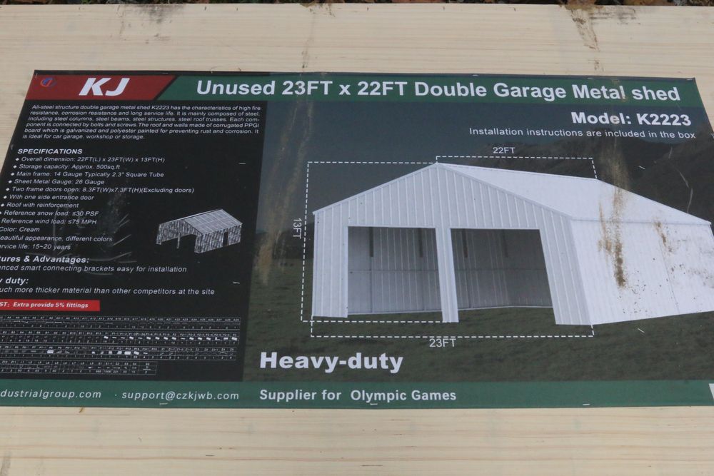 Items include new 2025 CFG Industrial mini excavators, gas powered mini excavators; new 2025 KJ 20' bi-parting iron gates, double garage metal shed, all-steel carport, livestock metal shed, hot-dip galvanized field fence, portable restroom; new MIVA mini excavator attachments: auger, rake, ripper, hedge cutter, hydraulic thumb; tilting excavator bucket; rubber track; new 2025 GIYI skid steer fork attachment; new 2025 SKLP fork extension; new 2025 MIG welder; new Husky black tool locker; new 2025 CFG Industrial mini skid steer backhoe & more. Items are located in Pleasant Valley, NY. Preview is highly recommended.