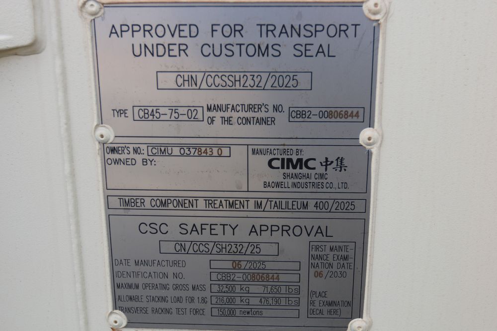 New 2025 40' High cube multi-door container, four side doors, one end door. Container # CIMU0378430.
