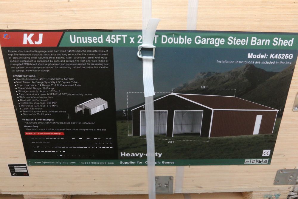 Items include new 2025 CFG Industrial mini excavators, gas powered mini excavators; new 2025 KJ 20' bi-parting iron gates, double garage metal shed, all-steel carport, livestock metal shed, hot-dip galvanized field fence, portable restroom; new MIVA mini excavator attachments: auger, rake, ripper, hedge cutter, hydraulic thumb; tilting excavator bucket; rubber track; new 2025 GIYI skid steer fork attachment; new 2025 SKLP fork extension; new 2025 MIG welder; new Husky black tool locker; new 2025 CFG Industrial mini skid steer backhoe & more. Items are located in Pleasant Valley, NY. Preview is highly recommended.