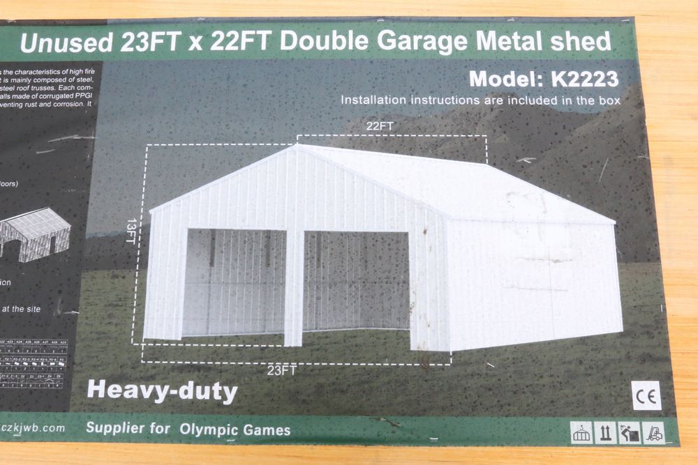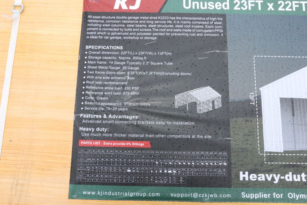 Items include new 2025 CFG Industrial mini excavators, gas powered mini excavators; new 2025 KJ 20' bi-parting iron gates, double garage metal shed, all-steel carport, livestock metal shed, hot-dip galvanized field fence, portable restroom; new MIVA mini excavator attachments: auger, rake, ripper, hedge cutter, hydraulic thumb; tilting excavator bucket; rubber track; new 2025 GIYI skid steer fork attachment; new 2025 SKLP fork extension; new 2025 MIG welder; new Husky black tool locker; new 2025 CFG Industrial mini skid steer backhoe & more. Items are located in Pleasant Valley, NY. Preview is highly recommended.