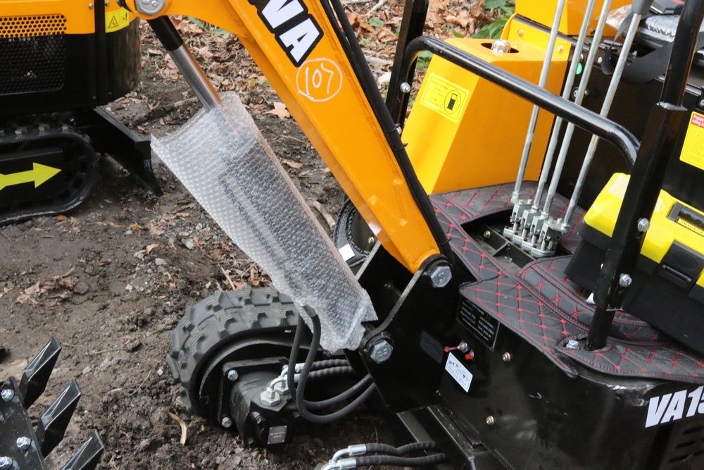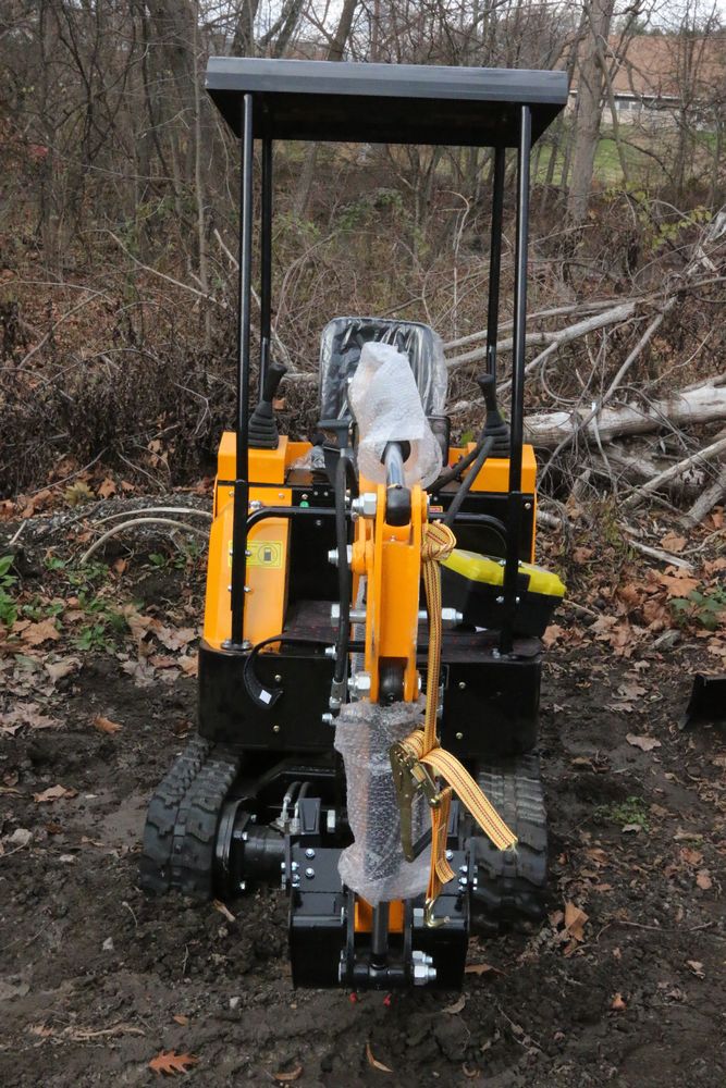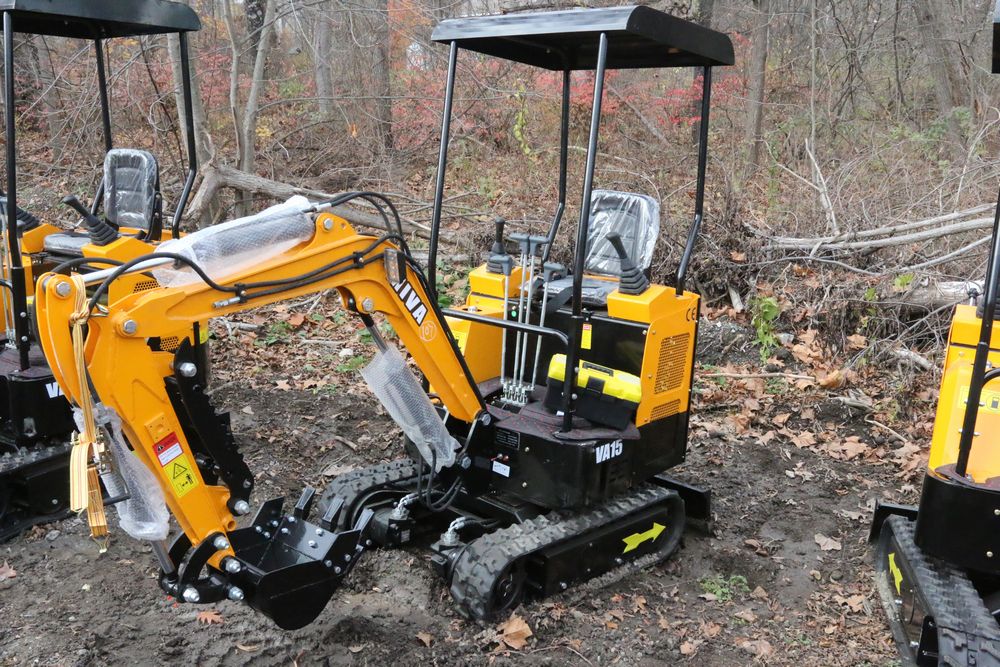 New MIVA mini excavator model: VA15, 13.5hp Briggs and Stratton gas engine, w/ thumb, Hydraulic Boom & Bucket Controls, bucket, with canopy and support bars. Hours reading less than one hour.