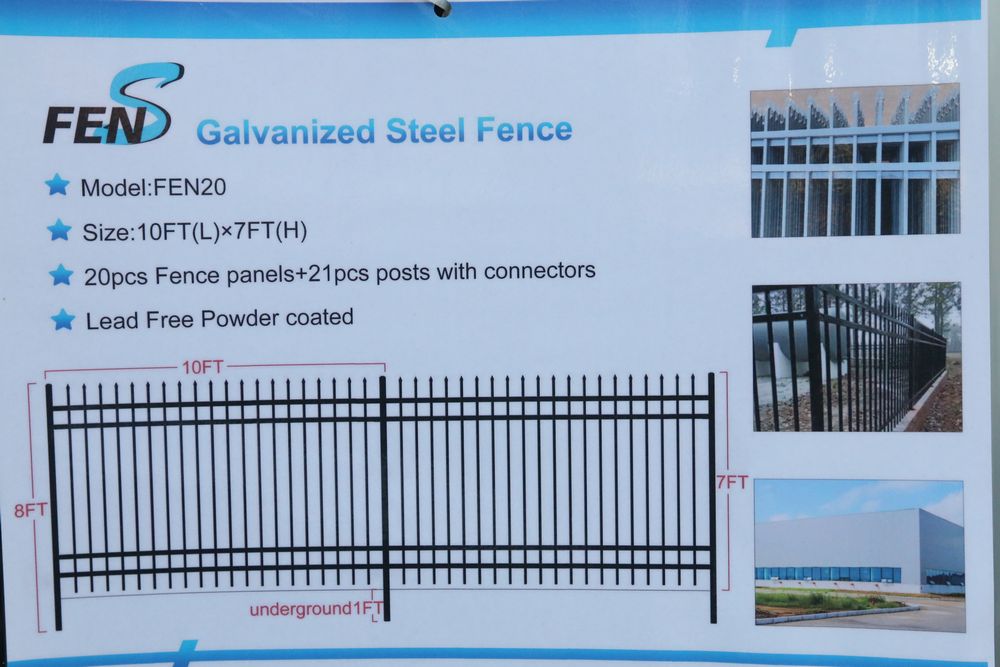 New 2025 FEN Galvanized steel fence model fen20, 10'x7'. 20 fence panels plus 21 posts with connectors. Lead free powder coated black.