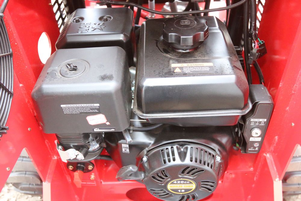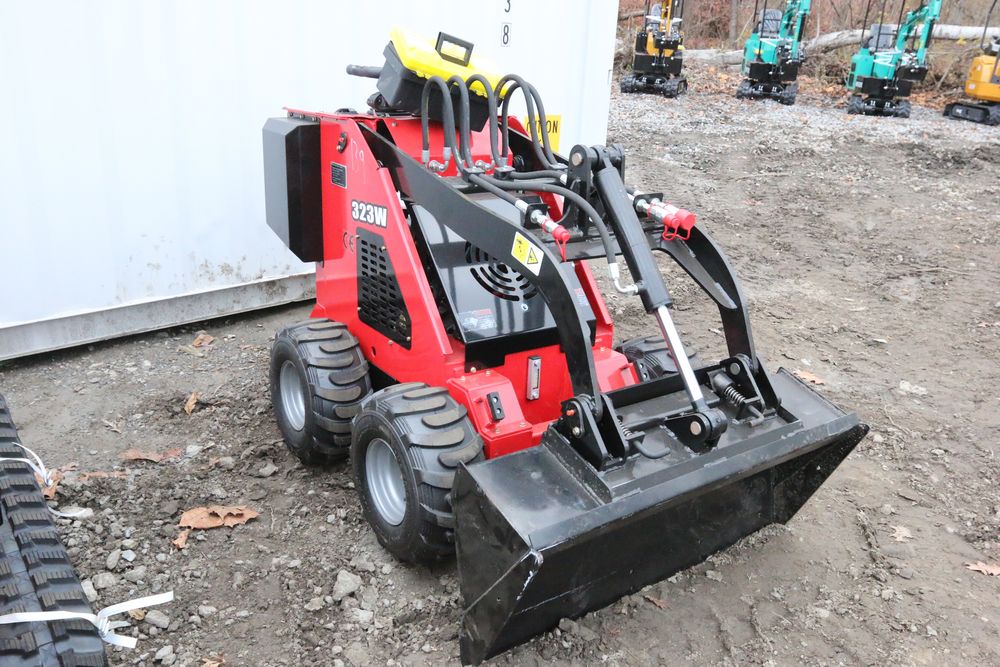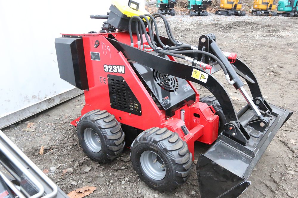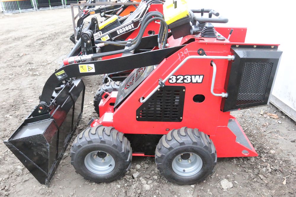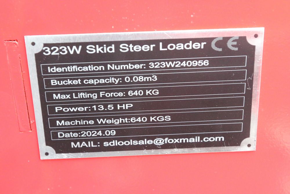 New mini skid steer loader model: 323W, 13.5hp engine, bucket, hand controls, front facing lights, auxiliary hydraulics. Hours reading less then one hour.