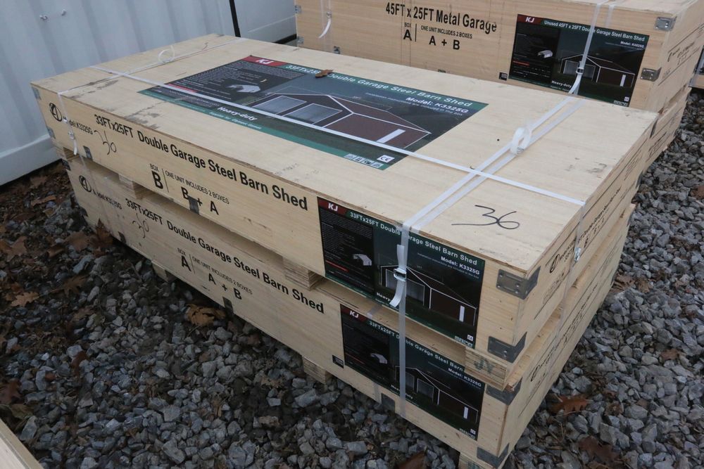 New 2025 KJ 33'x25' Double Garage Steel Barn, model K3325G.