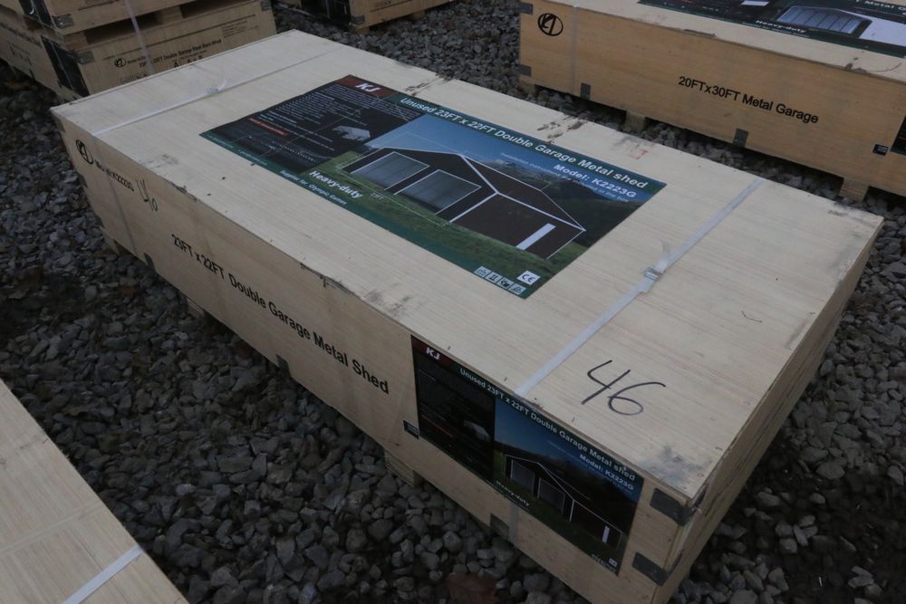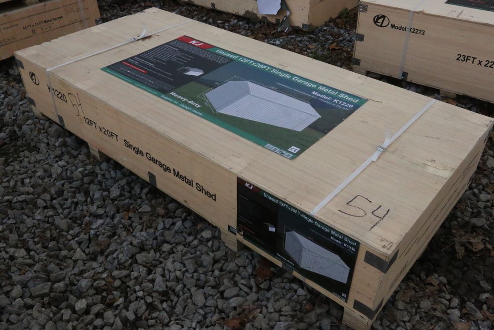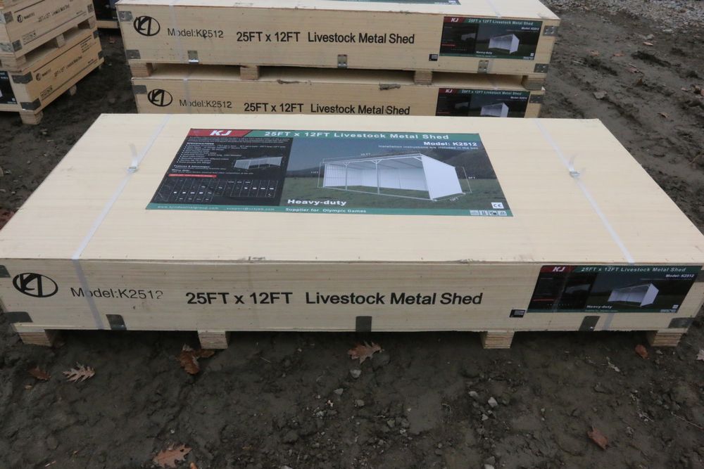 New 2025 KJ unused 20ftx12ft livestock metal shed model K1912, in wood crate.