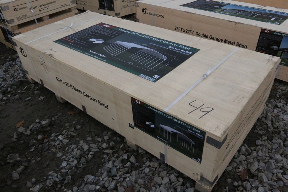 New KJ All-steel carport, 20'Wx40'Lx14'T, model K4020, in wood crate.