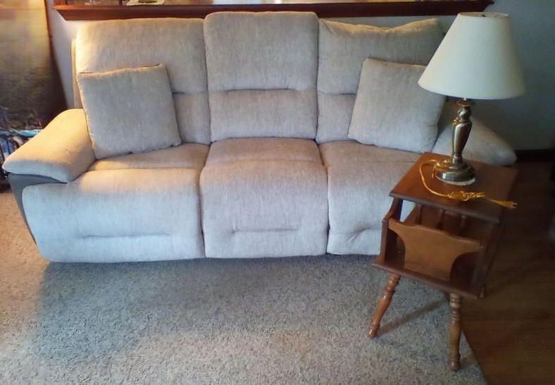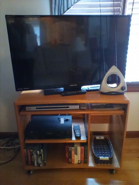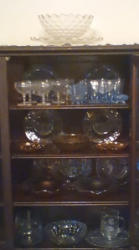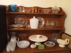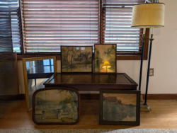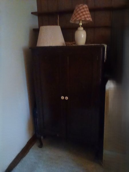 Items include Peavy & Fender speakers; vintage coffee table; Bob's mechanical sofa; maple farm table/country hutch; West Virginia beverage set; Woodbury pewter; TV; milk glass; Waltham wall clock; MCM student desk/dresser; La-Z-Boy recliner; McCoy vessel; table linens; Carnival glass; American Tourister travel garment bag; Corning/Pyrex bakers; lamps; mirrors & more. Items are located in Plantsville, CT.