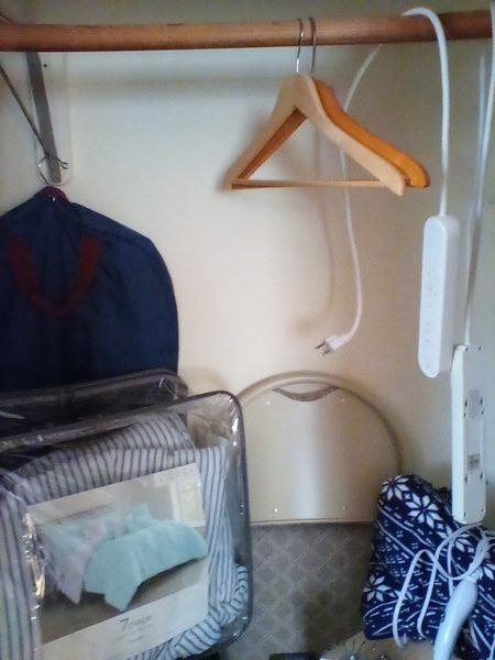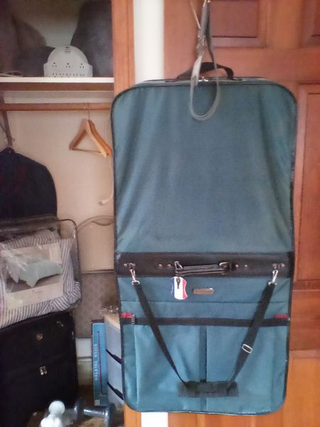 Household Functional. Incl: Am Tourister travel garment bag; suitcase; folding chair; bed rest; wood hangers; two blankets; bed set; three-drawer plastic storage; wood foot rest; multi outlet device; pr 10lb weights; extension cords.
