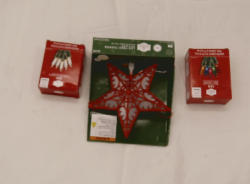 Items include 9' pre-lit flocked Colorado artificial Christmas tree; swivel bike wall mount; Rimaur Tempest Anime Cosplay sword; Athletic Works mini stepper machine; dog & cat Christmas-themed clothes; Macy's leather Hutchenson seven-piece power reclining sectional; Holiday Time 7.5' non-lit Donner Fir artificial Christmas tree; Steelcasae Uno Ergonomic office chair; Saatva natural latex hybrid queen mattress; set of black leather dining chairs; Macy's Mandeville rectangular dining table & chairs; Rachel Ray Home Cinema dining table; MOVOCA pilates board; Macy's Sadie four-piece upholstered side chair set; Christmas items: cool white mini lights, lighted garland, ornaments, tree toppers, gift boxes; gift bows, stockings, wrapping paper; A&A premium natural mahogany folding chess set; putting green indoor mat & more. Items are located in Pleasant Valley, NY.