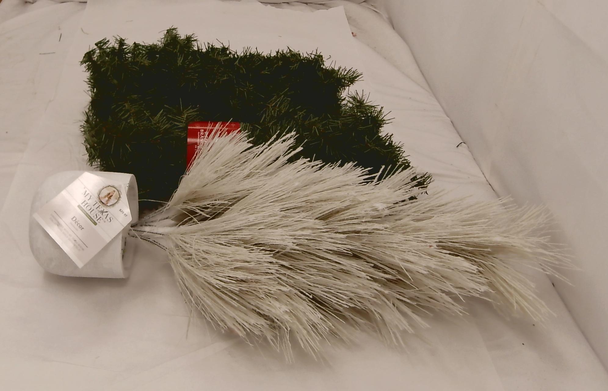 Items include 9' pre-lit flocked Colorado artificial Christmas tree; swivel bike wall mount; Rimaur Tempest Anime Cosplay sword; Athletic Works mini stepper machine; dog & cat Christmas-themed clothes; Macy's leather Hutchenson seven-piece power reclining sectional; Holiday Time 7.5' non-lit Donner Fir artificial Christmas tree; Steelcasae Uno Ergonomic office chair; Saatva natural latex hybrid queen mattress; set of black leather dining chairs; Macy's Mandeville rectangular dining table & chairs; Rachel Ray Home Cinema dining table; MOVOCA pilates board; Macy's Sadie four-piece upholstered side chair set; Christmas items: cool white mini lights, lighted garland, ornaments, tree toppers, gift boxes; gift bows, stockings, wrapping paper; A&A premium natural mahogany folding chess set; putting green indoor mat & more. Items are located in Pleasant Valley, NY.