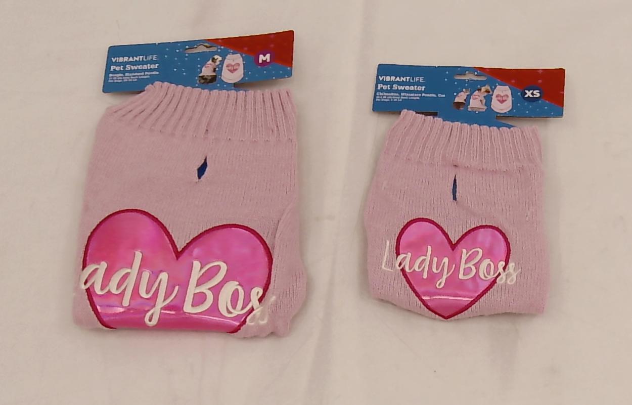 Vibrant Life Winter Dog Clothes Lady Boss Pink Sweater Medium & Extra Small (Lot of 2)