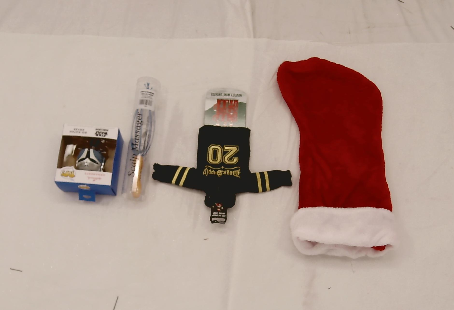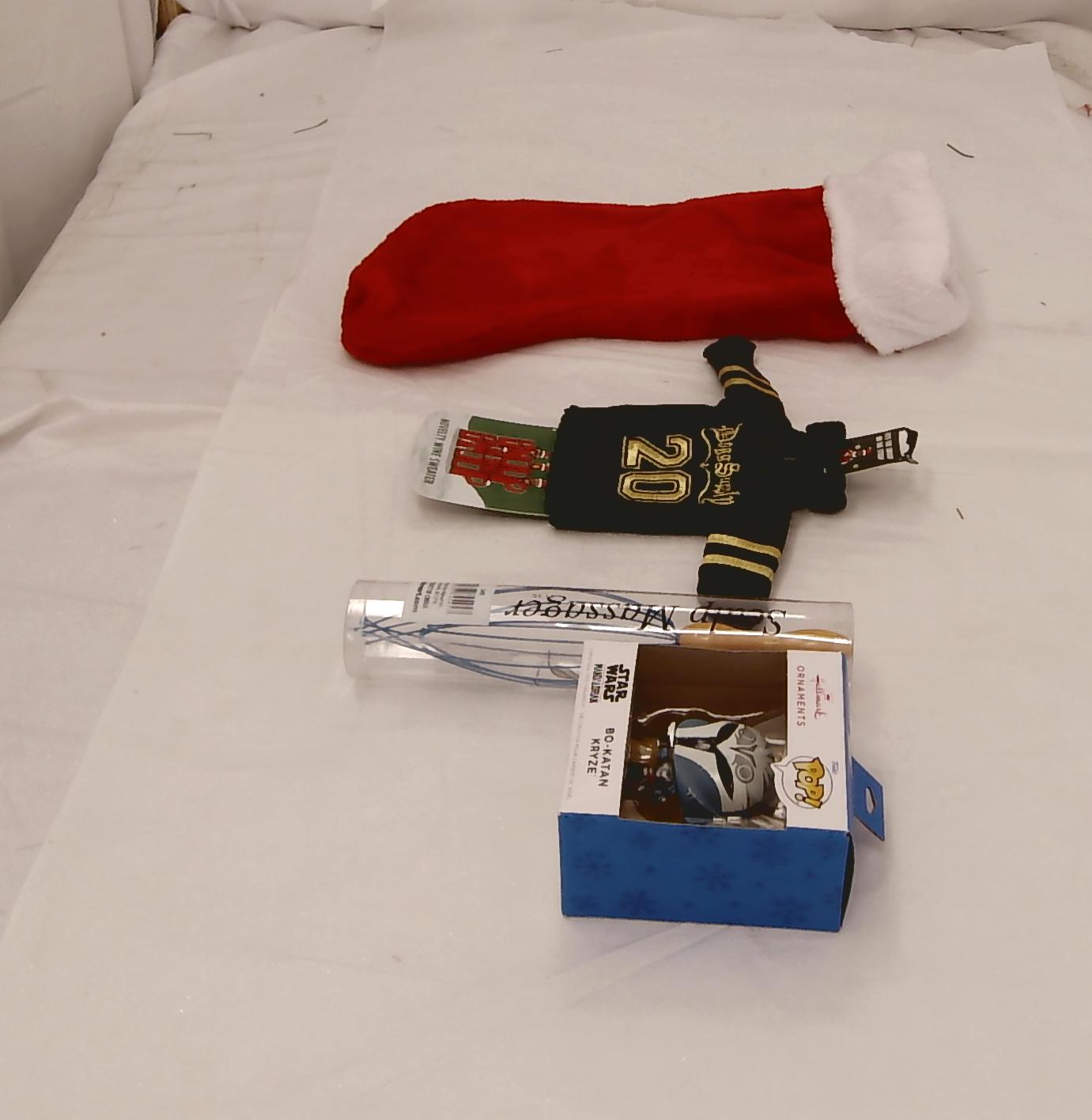 Items include 9' pre-lit flocked Colorado artificial Christmas tree; swivel bike wall mount; Rimaur Tempest Anime Cosplay sword; Athletic Works mini stepper machine; dog & cat Christmas-themed clothes; Macy's leather Hutchenson seven-piece power reclining sectional; Holiday Time 7.5' non-lit Donner Fir artificial Christmas tree; Steelcasae Uno Ergonomic office chair; Saatva natural latex hybrid queen mattress; set of black leather dining chairs; Macy's Mandeville rectangular dining table & chairs; Rachel Ray Home Cinema dining table; MOVOCA pilates board; Macy's Sadie four-piece upholstered side chair set; Christmas items: cool white mini lights, lighted garland, ornaments, tree toppers, gift boxes; gift bows, stockings, wrapping paper; A&A premium natural mahogany folding chess set; putting green indoor mat & more. Items are located in Pleasant Valley, NY.