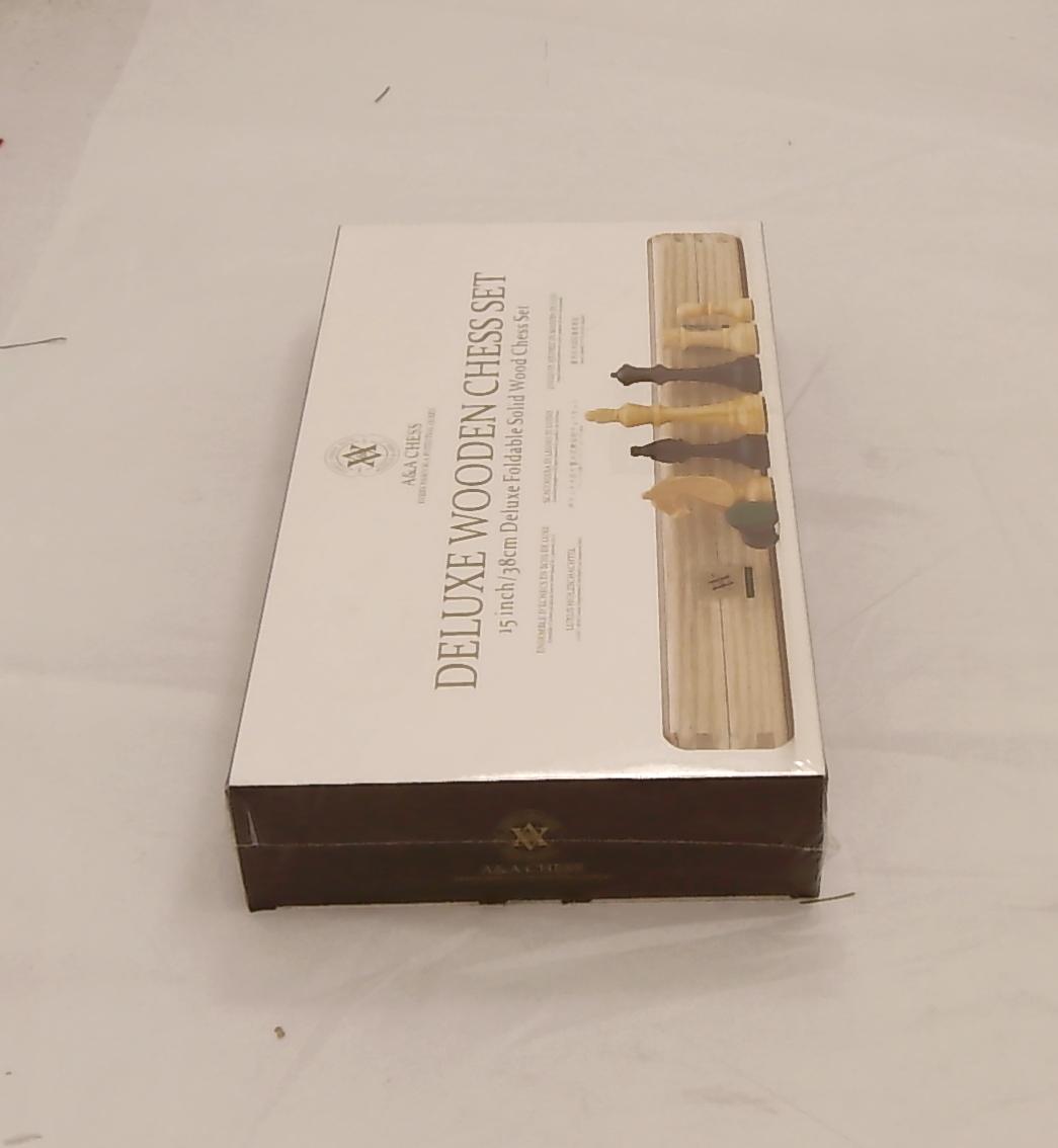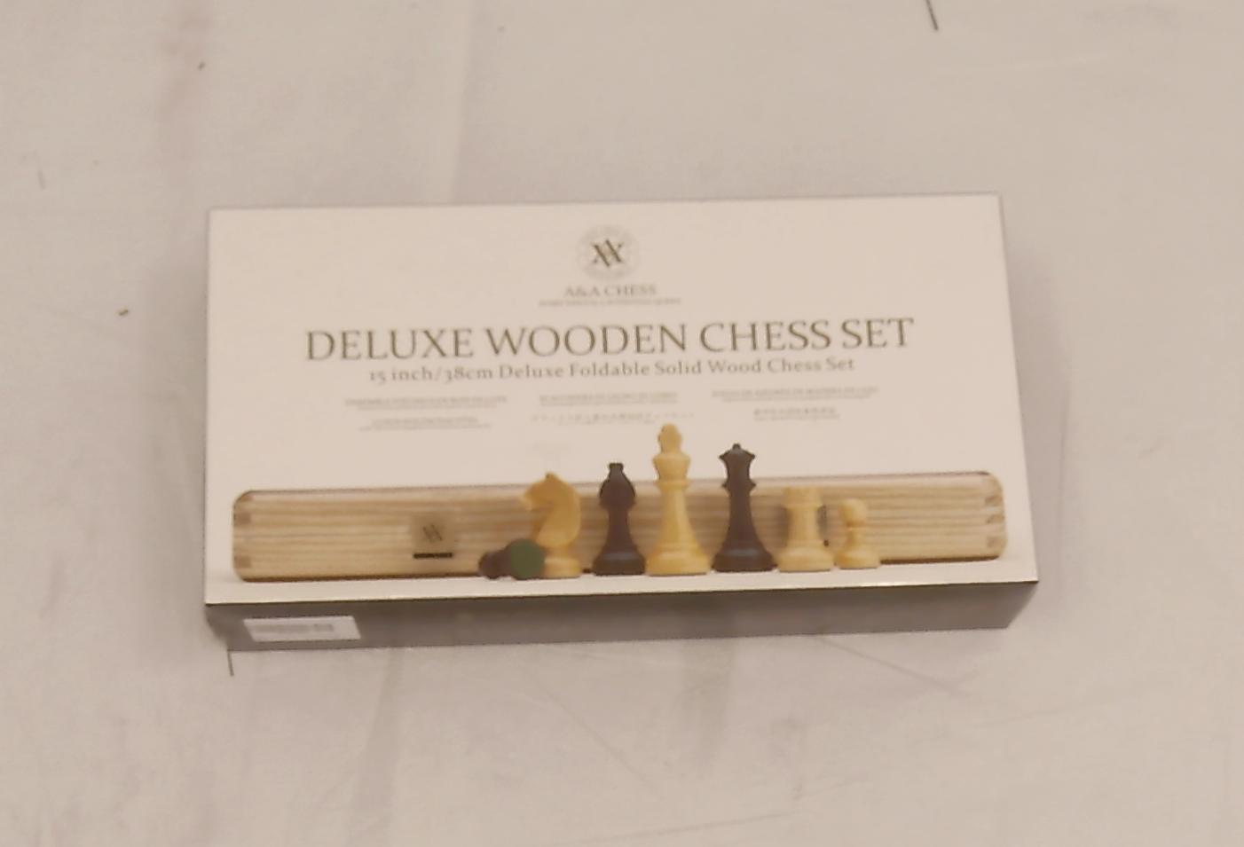 A&A Premium Natural Mahogany Folding Chess Set, w/ 15" Board & 3" King Height Staunton Chess Pieces, Includes 2 Extra Queens and a Storage Bag