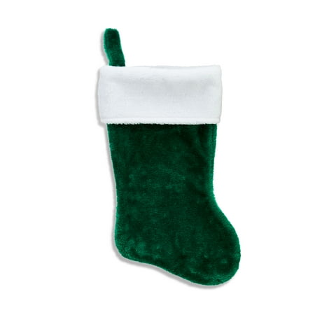 Holiday Time Christmas Green Plush Christmas Stocking with white cuff (Lot of 3)